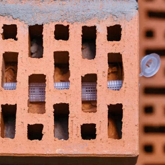 - 3. Очистіть отвір металевою щіткою і вилучіть залишки пилу. Повторіть цю діяльність чотири рази. Потім покладіть правильну сітчасту рукав у отвір.