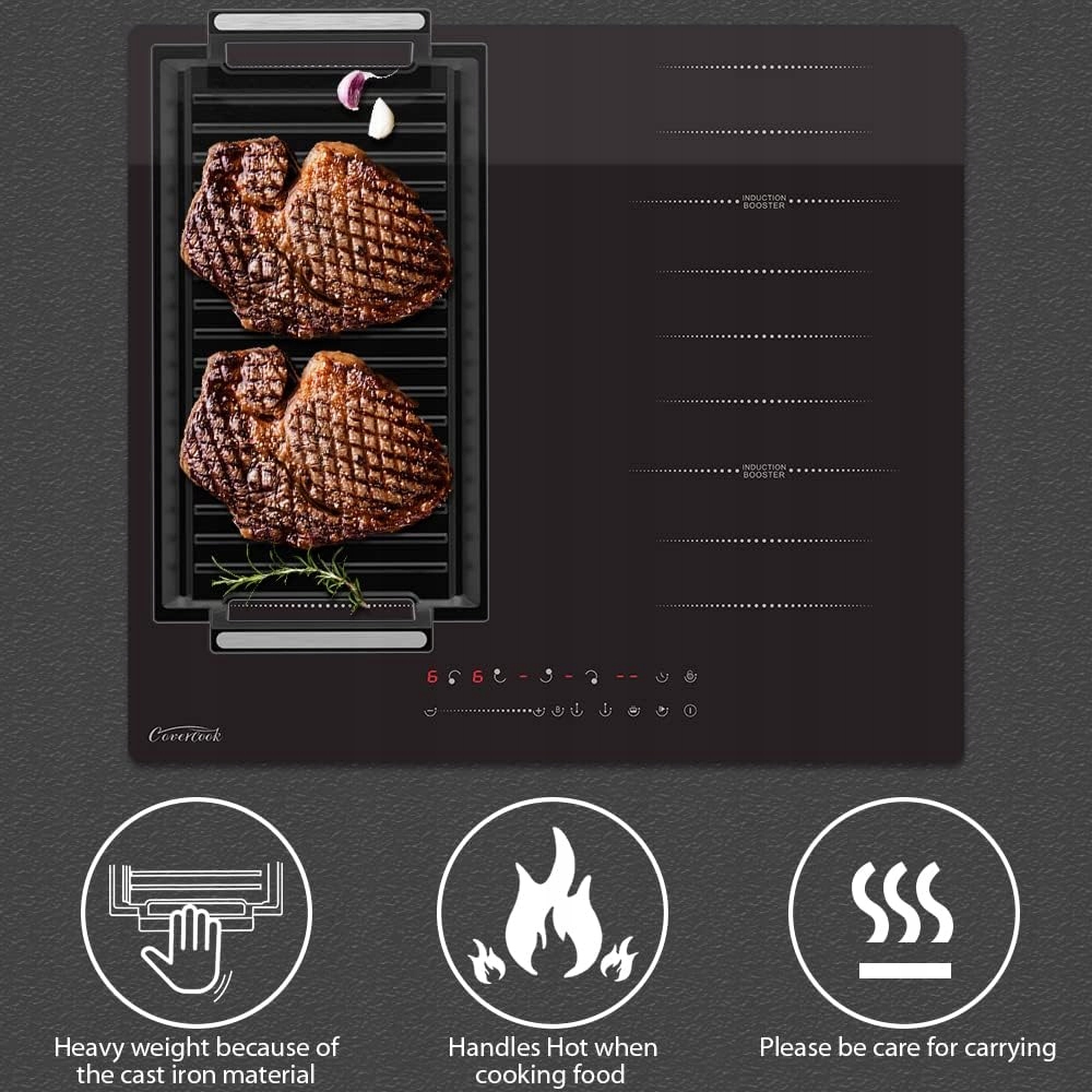 Плита для гриля COVERCOOK 43x23 см, чавун, ребриста та плоска, 2 ручки