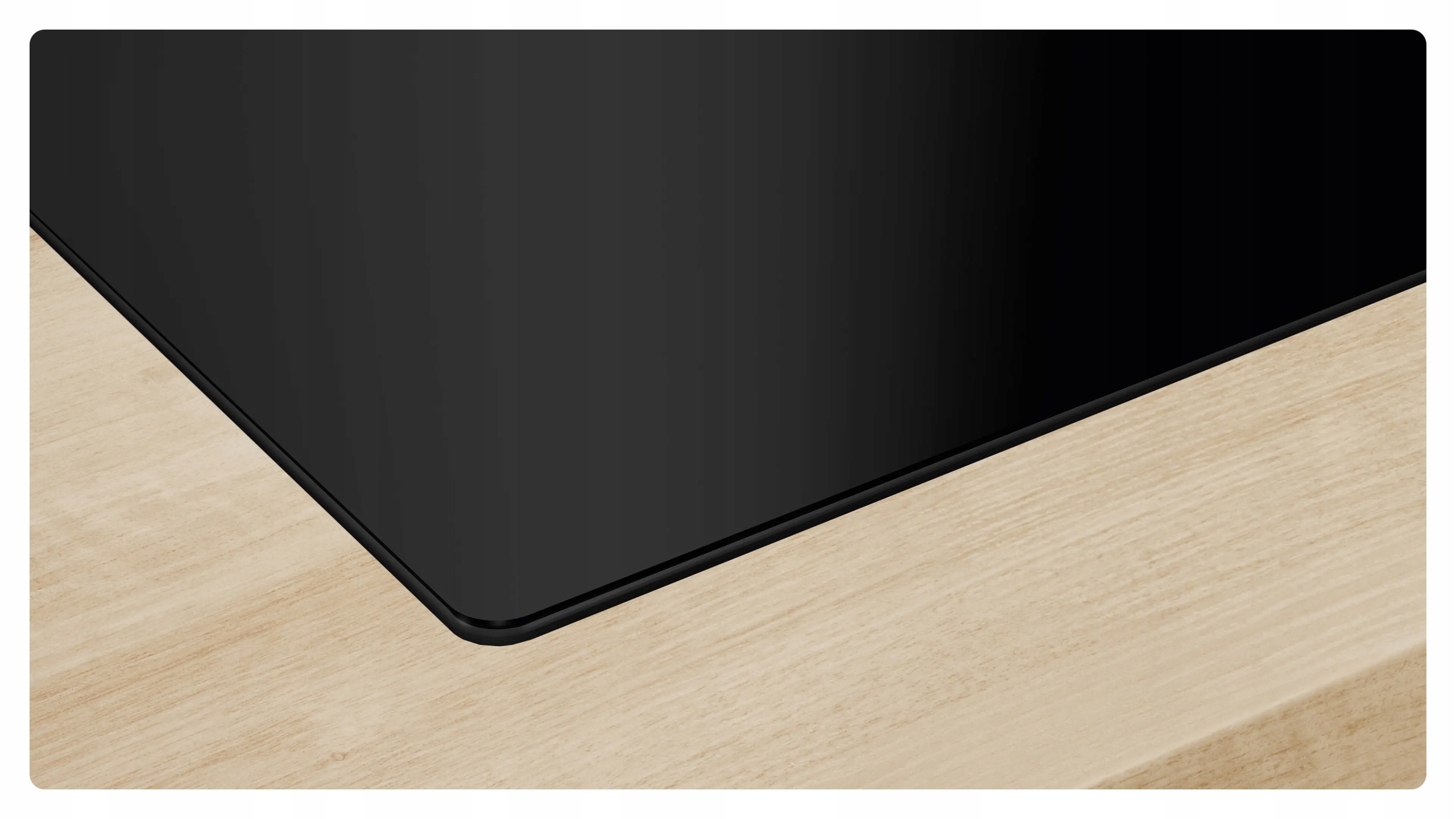 Поверхня варильної панелі без рамок і злегка піднята, а поверхня нагріву віддалена від робочої поверхні.