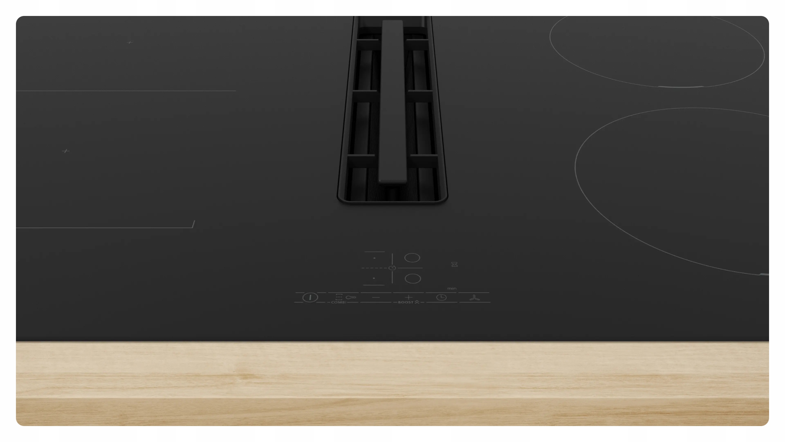 Нагрівальна панель, інтегрована з витяжкою, поєднує в собі найкращі характеристики наших індукційних плит і кухонних витяжок. Витяжка, вбудована в поверхню варильної поверхні, миттєво видаляє запахи та пари, що утворюються під час приготування їжі. Таким чином вам не знадобиться окрема витяжка, і ви отримаєте більше місця для шаф — або у вас буде кращий огляд усієї кухні.