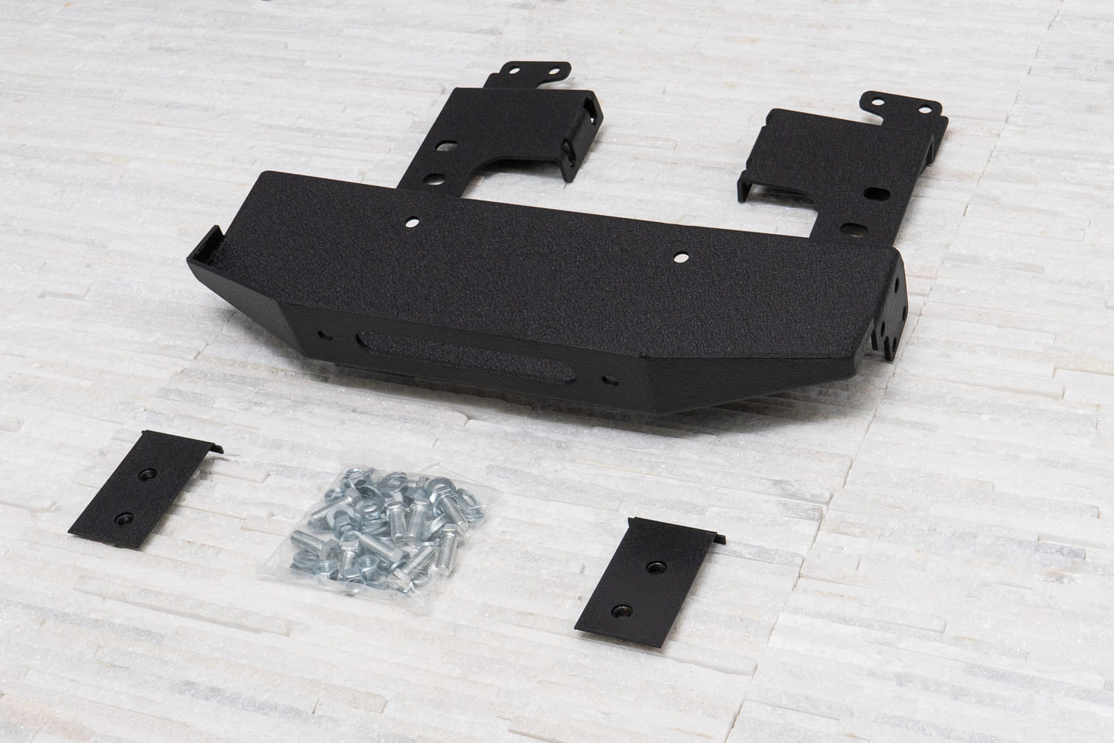 Накладка бампера лебідки створена для максимального збільшення функціональності вашого Jeep. Пропонований виріб виготовляється з холоднокатаної сталі. Для фарбування в якості попереднього покриття використовувалася епоксидна фарба, яка створила міцну основу, а друге покриття створює характерну чорну структуру. Пластина підходить для більшості лебідок.