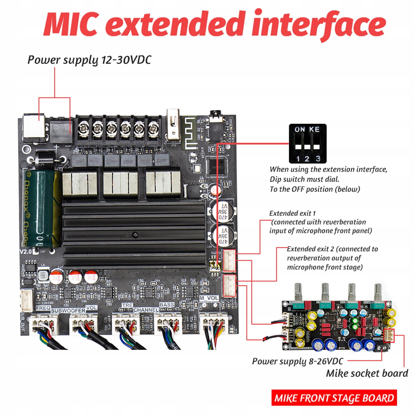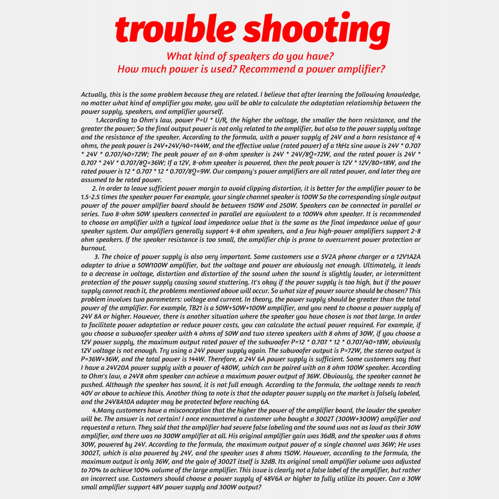 1. 1. Висока вихідна потужність: 2,1 TPA3221 канал Плата підсилювача потужності забезпечує вражаючу потужність 100 Вт на канал і 200 Вт для сабвуфера, забезпечуючи потужний звуковий досвід, що покращує задоволення музики та фільму.