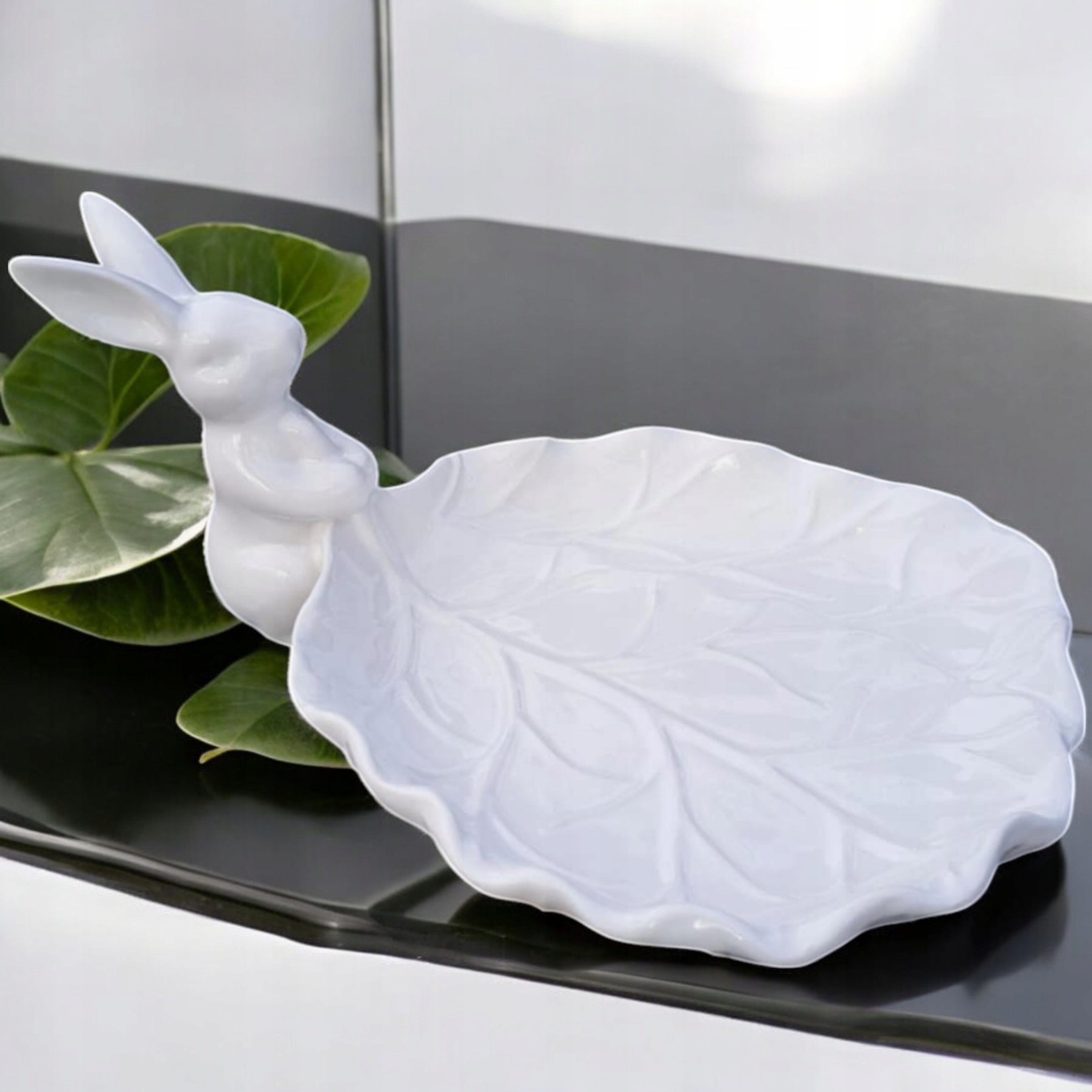 Білий лист Patera - це елегантне та функціональне доповнення до вашої кухні та відмінний декоративний елемент на столі. Виготовлений з високоякісної кераміки, характеризується міцністю та довговічністю, що робить його ідеальним для подачі солодкої випічки та тортів. Його ніжний білий колір у поєднанні з чарівним мотивом зайчика надає продукту унікальний персонаж, що робить його прикрасою будь -якої церемонії, від домашніх вечірок до сімейних свят. Patera легко чистити, що робить її практичним рішенням для кожного коханого гарного смаку. Збагатіть свої кулінарні враження завдяки цій чарівній Patera, яка поєднує стиль та функціональність.