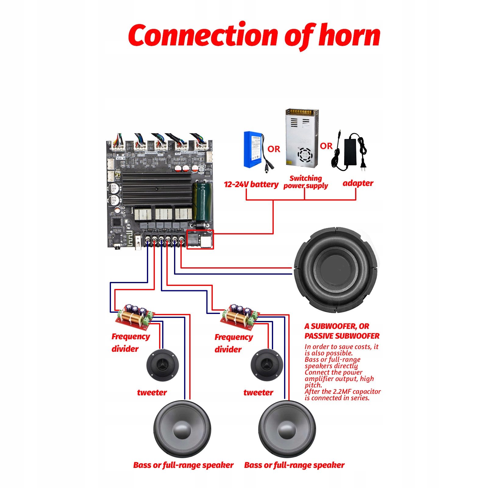 3. Багато варіантів введення: пластина підсилювача оснащена різними параметрами введення, включаючи Bluetooth, aux, USB та звукову карту, що дозволяє просте підключення пристроїв. Ця гнучкість дозволяє вам насолоджуватися улюбленою музикою таким чином, що вам найкраще підходить, незалежно від того, чи ви надсилаєте смартфон бездротовим або підключені безпосередньо через допоміжний кабель.