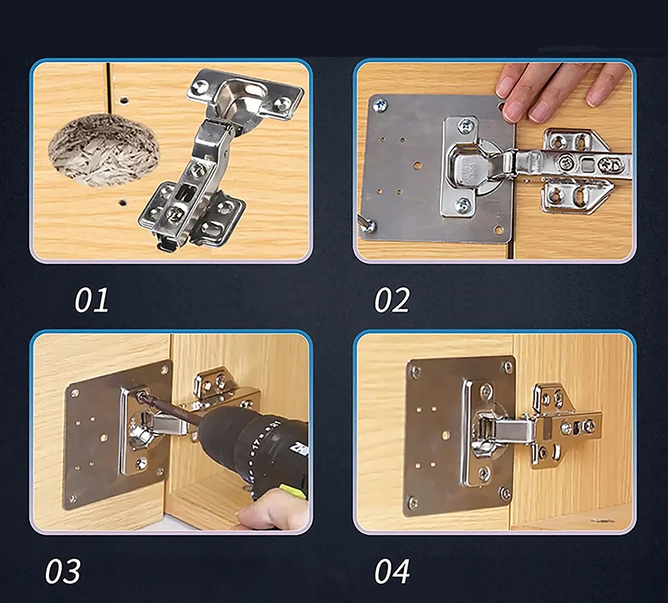 - 4 НАБОРИ ВКЛЮЧЕНО – набір включає 4 пластини та гвинти для складання. Цей набір дозволяє відремонтувати 2/4 петлі. Плитка універсальна в застосуванні, її можна використовувати для ремонту практично будь-яких предметів меблів.