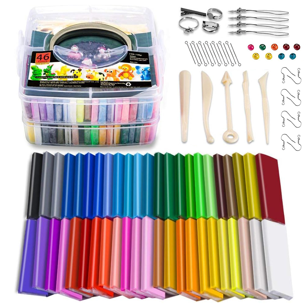 Встановіть 46 Пластинових кольорів полімерна пластикова глина + аксесуари та корпус