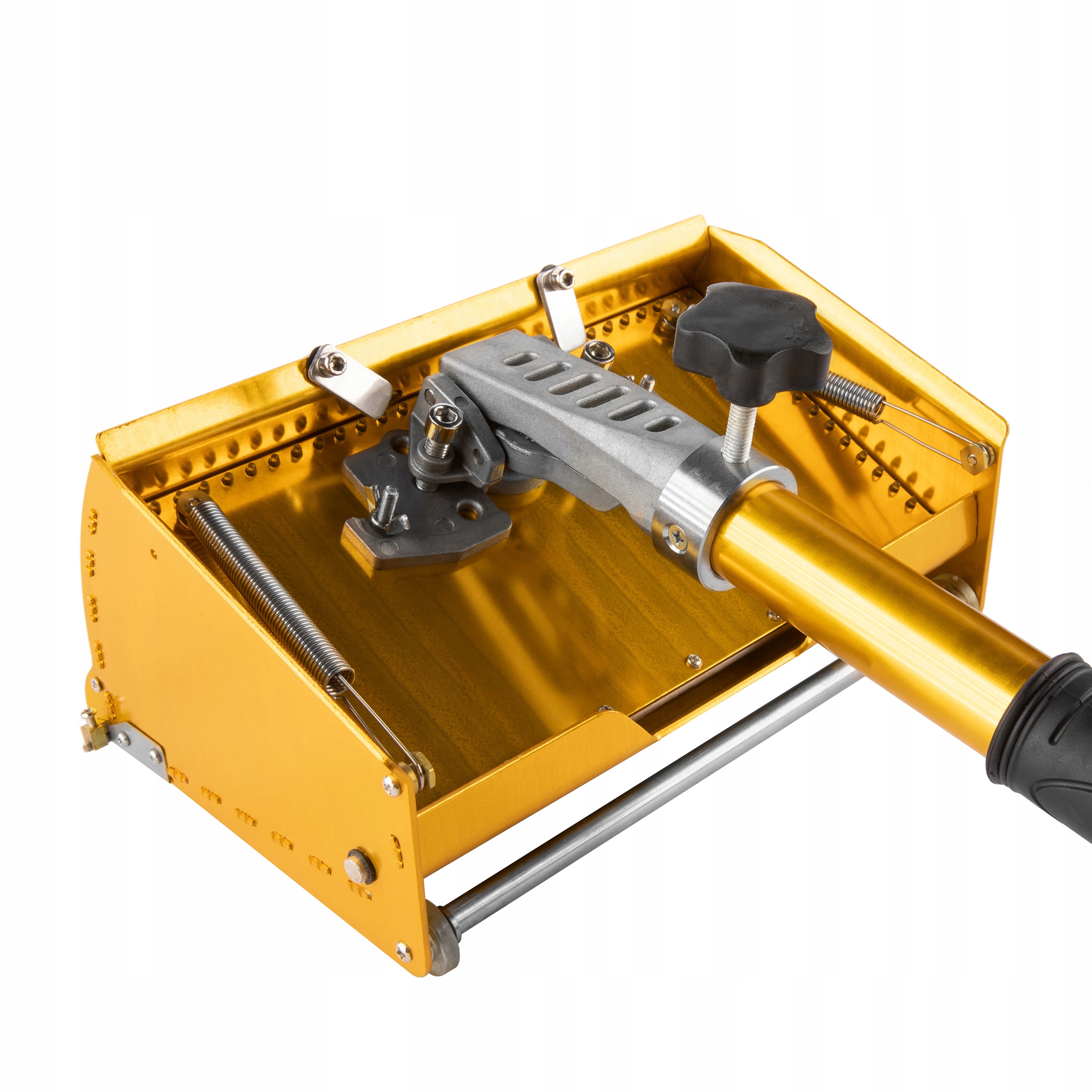 Пристрій оснащений водійським колесом, на якому ми запускаємо коробку, на іншому кінці пристрою регулюється до нержавіючої сталі, яка згладжує нанесену масу .