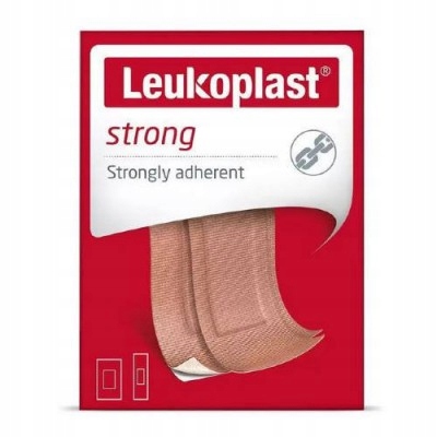 Leukoplast Strong - це пластир з надзвичайно міцним адгезивом для забезпечення безпечного прилипання під час загоєння невеликих ран. Клеїть виключно міцним клеєм. Він має дуже абсорбуючу пов’язку, яка не прилипає до рани, але добре прилипає до шкіри.