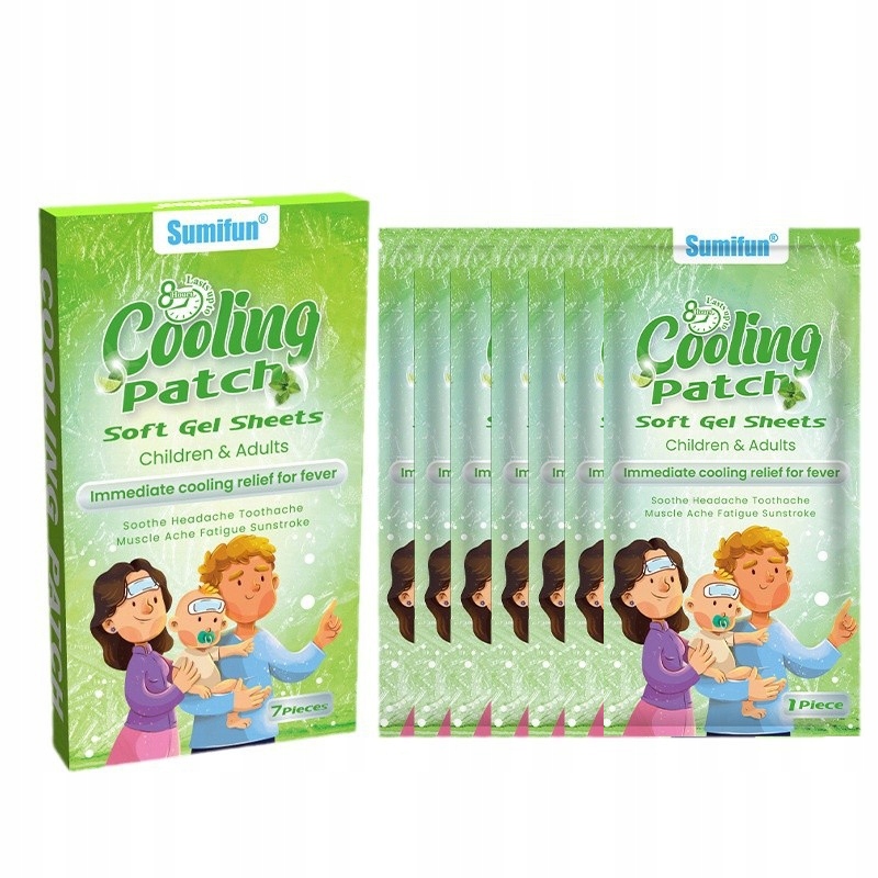 Plastry Chłodzące I Czoło Obniżające Temperaturę Łagodzące Ból Głowy 7 SZT