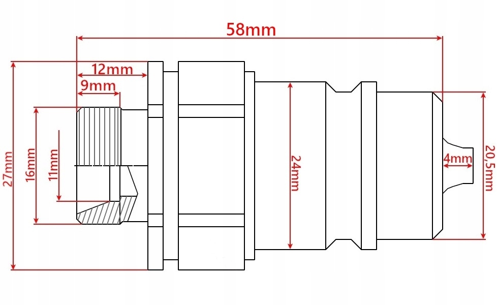 ГІДРАВЛІЧНИЙ ШВИДКИЙ З’ЄДНАНЬ, ДОВГА ЄВРОГНІЗОВА РІЗЬБА 16x1,5