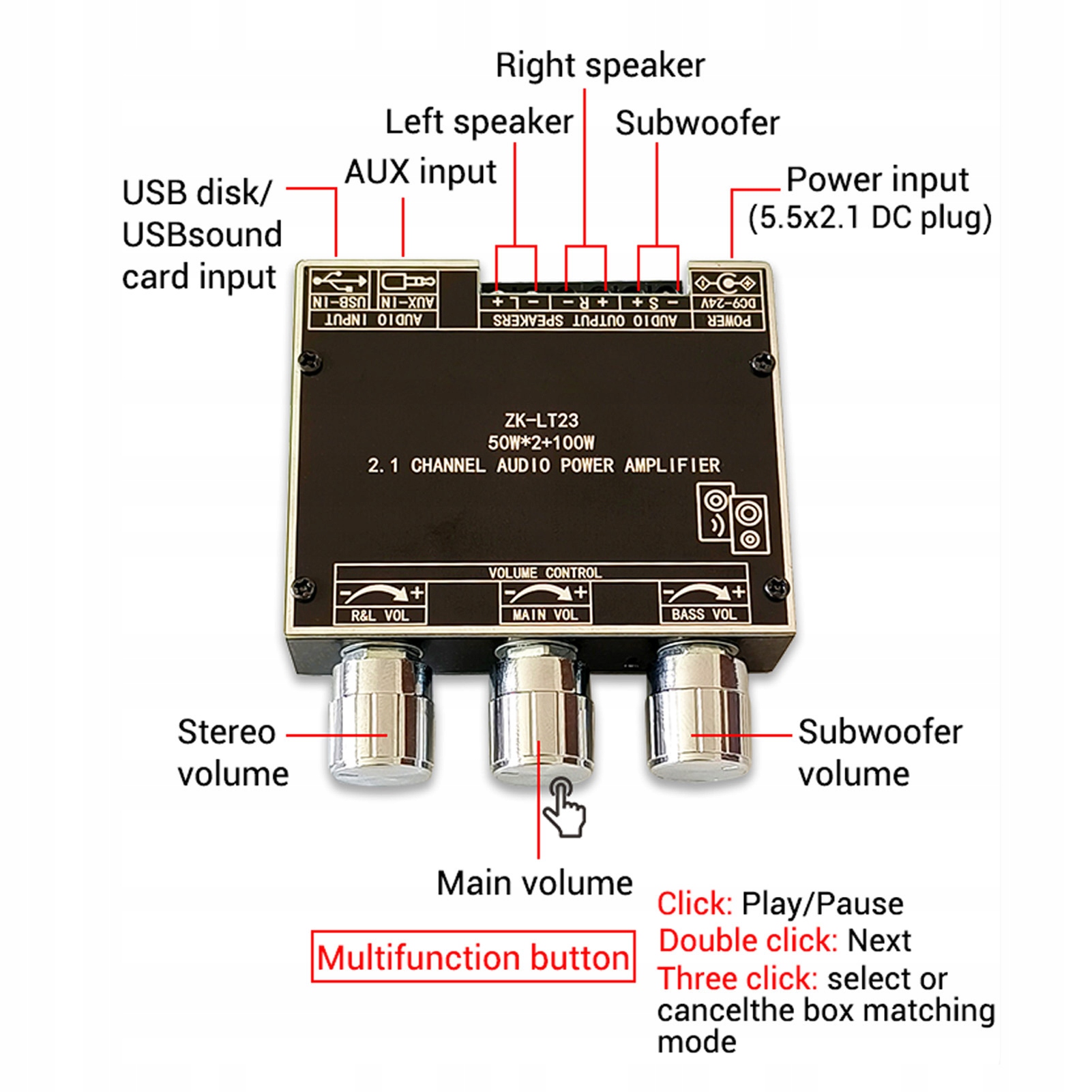 Керування гучністю плати підсилювача 2.1-канального модуля аудіопідсилювача Bluetooth для оптимізації звуку