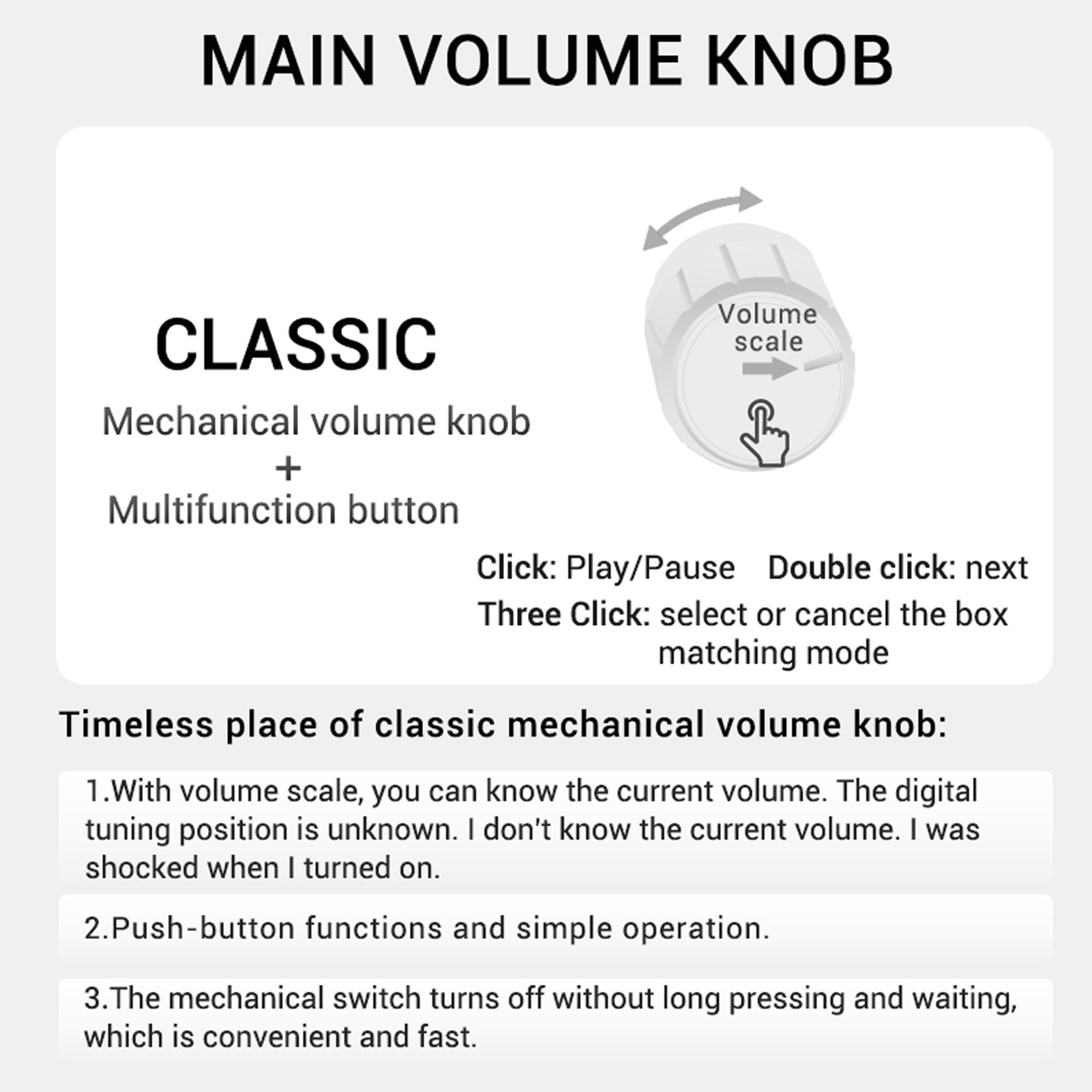 1, Просте управління: Ключові функції багаті, а управління просте. Справжнє плавне налаштування, а не цифрове ієрархічне налаштування. 2. Регулювання гучності: гучність сабвуфера та стереовиходу регулюються окремо; Загальна гучність - це механічний потенціометр, і положення гучності зрозуміле з першого погляду. 3、Кілька функцій: цей модуль підтримує Wuzhi Audio APP. Змінюйте ім’я Bluetooth, налаштування пароля, регулюйте гучність підказок, умикайте та вимикайте звук підказок, колискову, оновлюйте мікропрограму тощо. 4, Природний звук: 10 видів природних звуків створюють унікальні природні звукові сцени, швидко заспокоюють ваш настрій і створюють глибоке відчуття сон. 5、Просте встановлення: він має невеликі розміри та малу вагу, тому його можна швидко встановити.