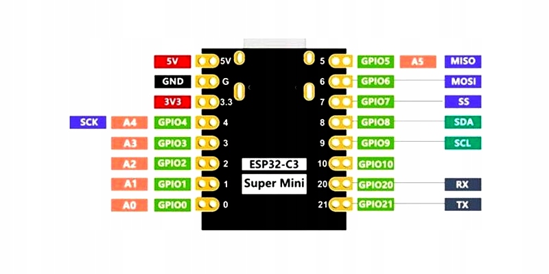 Один із найменших модулів ESP32, ідеальний для програм IoT. Базується на сучасній системі ESP32C3FN4, він підтримує підключення WiFi і Bluetooth 5 (LE) і характеризується низьким споживанням енергії.