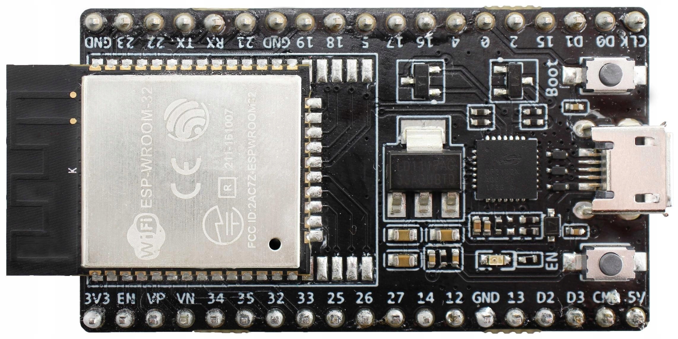 Плата розробки дозволяє легко використовувати можливості ESP32 (Wi- Fi + Bluetooth BLE) від Espressif. На платі є перетворювач USB/UART (Silabs CP2102), а більшість ліній GPIO модуля WROOM підключено до отворів із відстанню 2,54 мм.