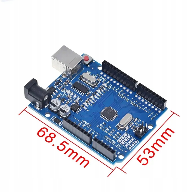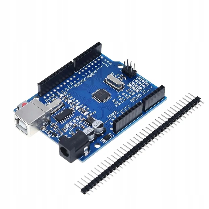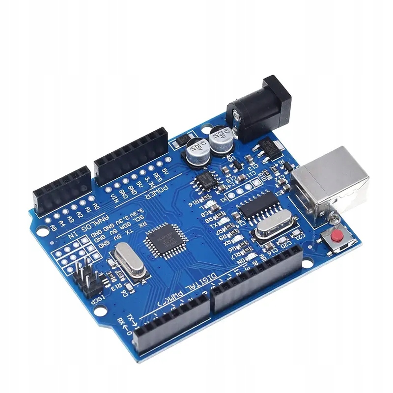 UNO R3 Development Board ATmega328P це мікроконтролер у формі плати, оснащеної роз’ємом універсальної послідовної шини (USB) для зв’язку з комп’ютером. Вони керують пристроями, підключеними до їхніх роз’ємів.