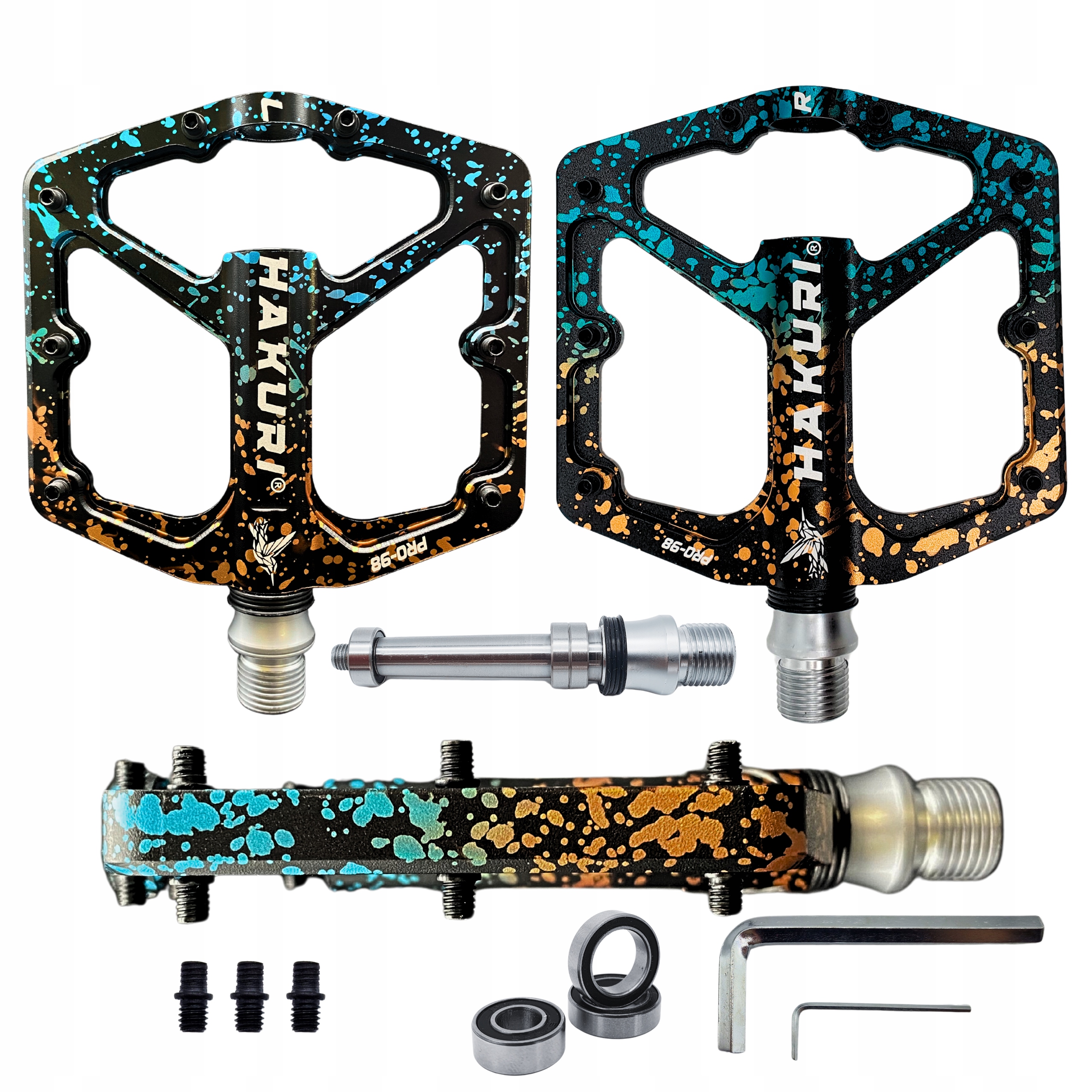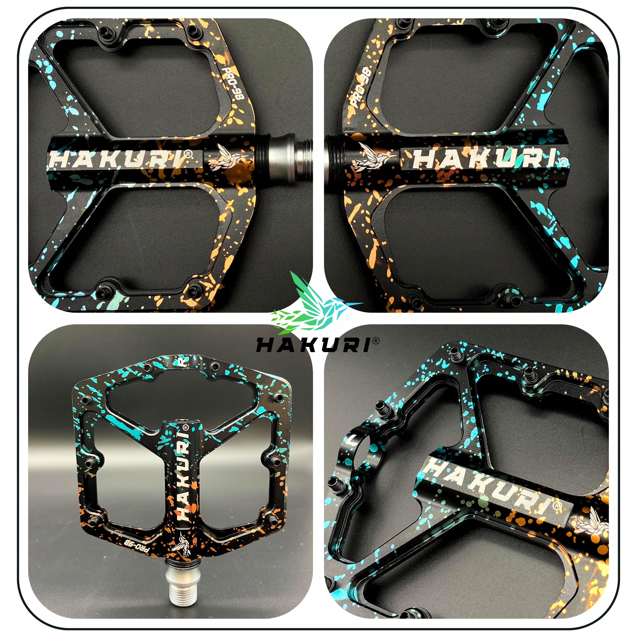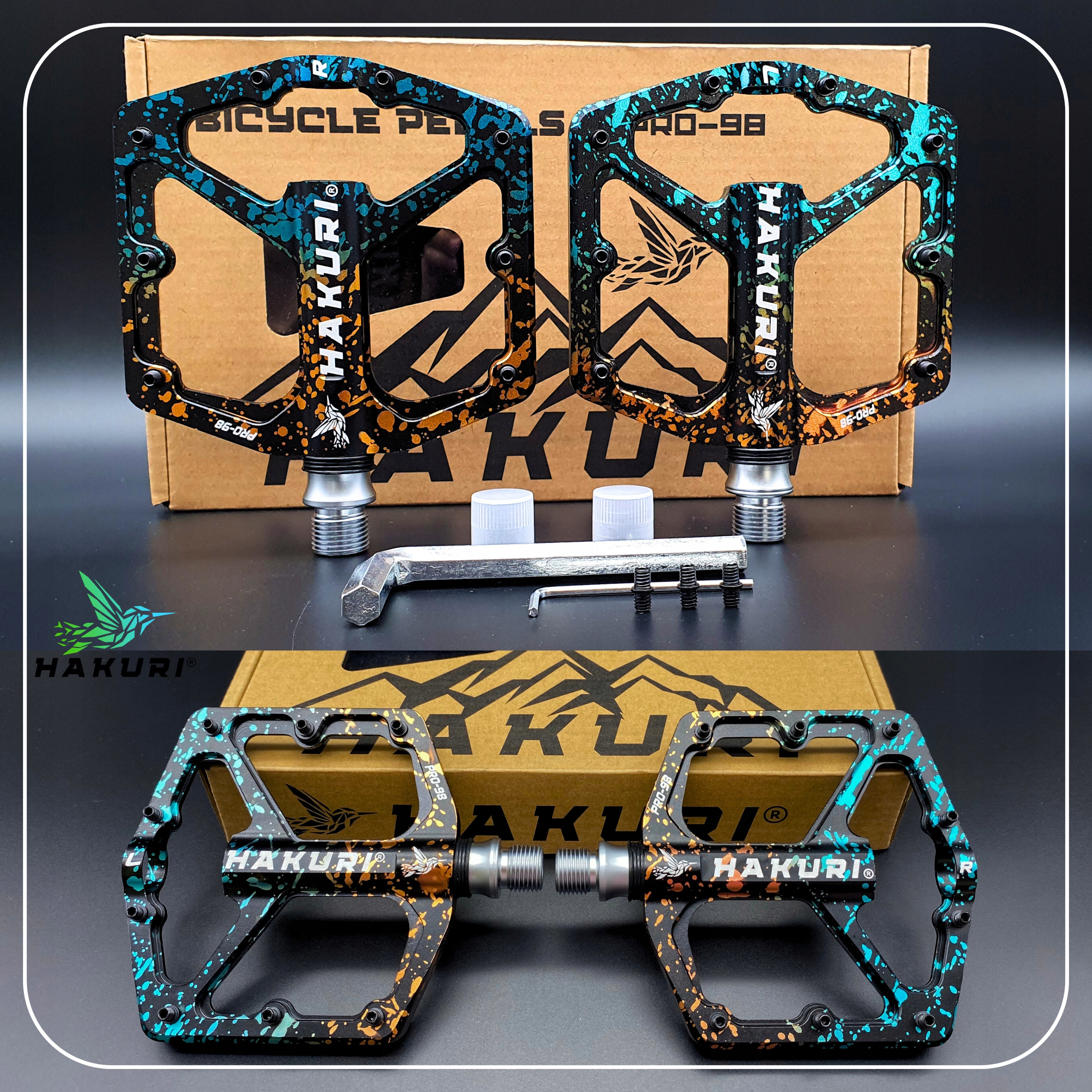 Ви шукаєте педалі, які забезпечать вам безпрецедентний велосипед у будь -якій області? Чи цінуєте ви комбінацію витривалості, легкості та надійності? Велосипедні педалі Hakuri Pro-98 "Salamander"-ідеальний вибір для вас! Створений для велосипедистів, які не бояться викликів і очікують обладнання найвищої якості. Якщо ви є ендуро, DH, All-Mountain, Trail або MTB, ці педалі відповідають вашим очікуванням.