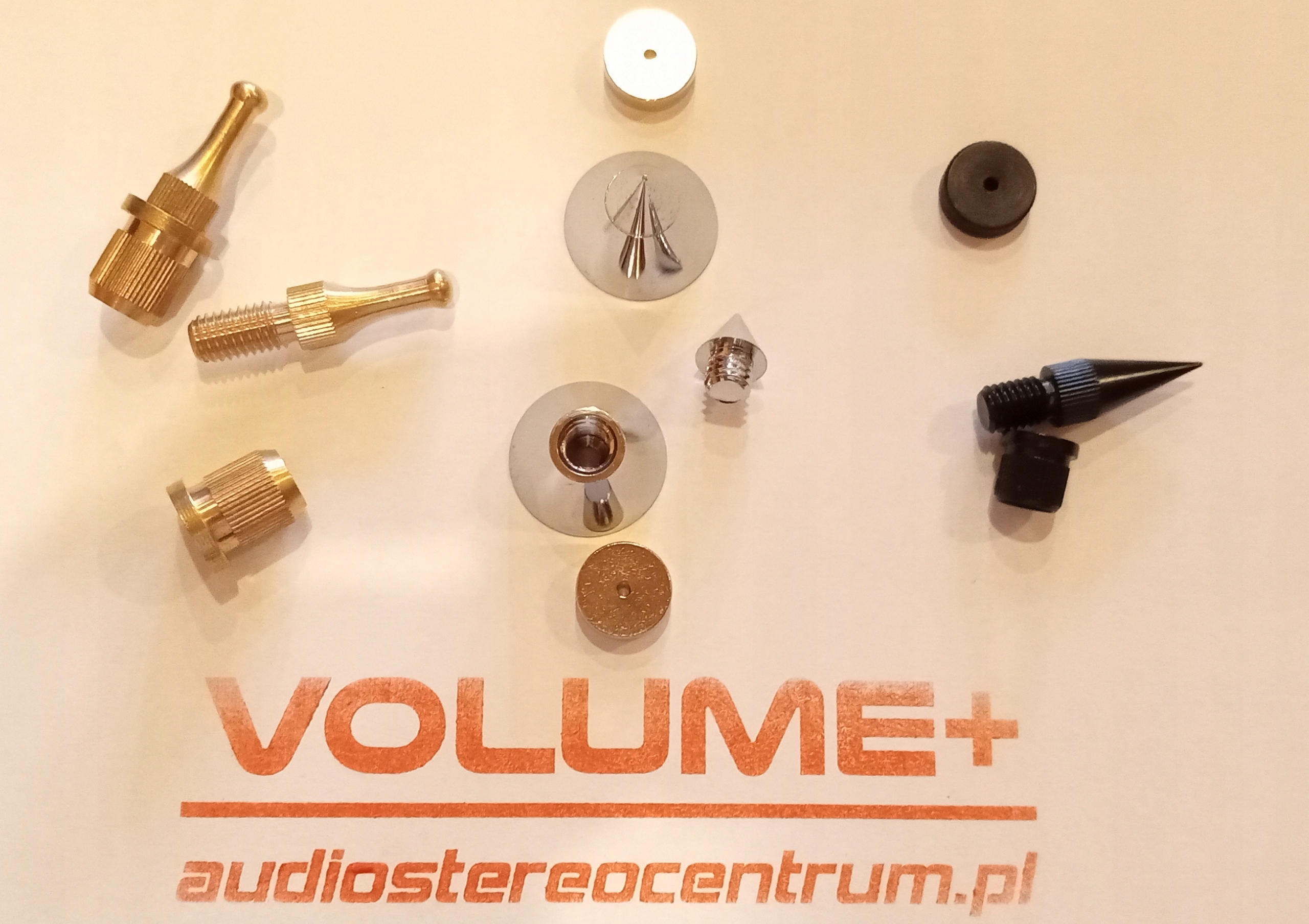 ВИДИТЬСЯ НА ФОТО - ОСНОВА з регульованими шипами ( шипи гострі, тому в набір входять металеві ковзанки, щоб не подряпати себе комод, стіл тощо) Крім того, 4 штуки великих 50-міліметрових фетрових наклейок, які можна приклеїти або розмістити будь-де на платформі.