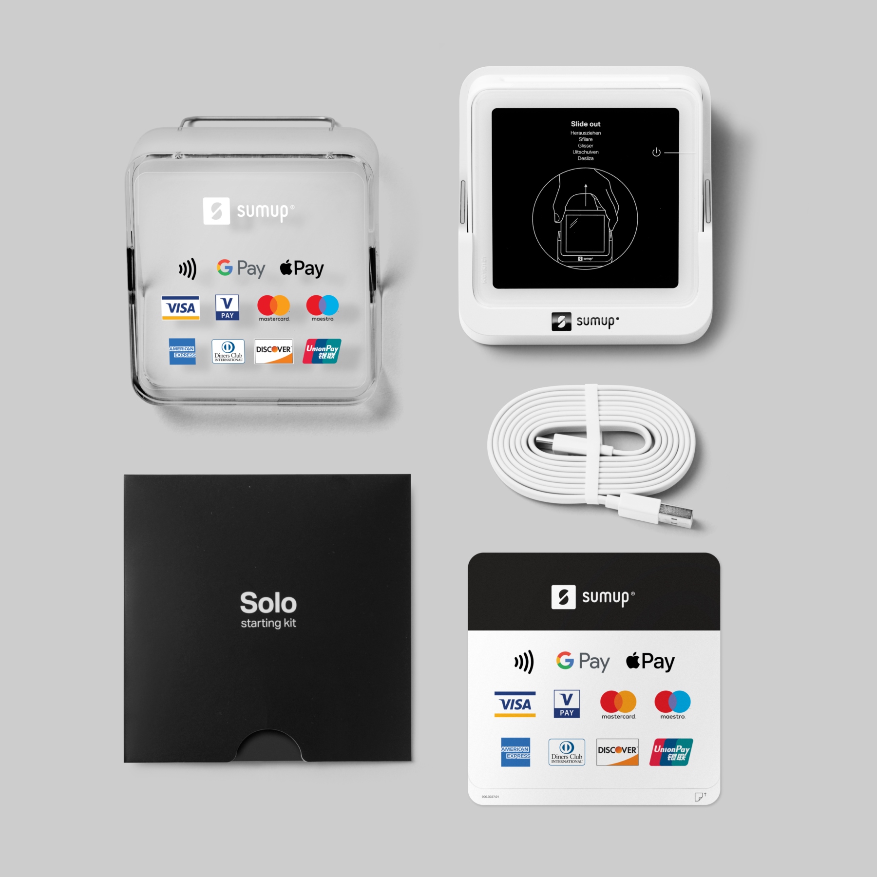 SumUp Solo – це інноваційне рішення, яке забезпечує легку та зручну обробку платежів. Він забезпечує підключений платіжний термінал, який вирізняється своїм компактним дизайном і простотою використання.