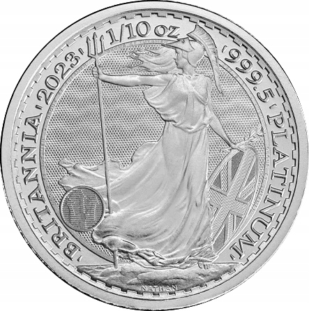 Ми представляємо платинову монету в злитках - Britannia 1/10 oz з 2023 року, випущену монетним двором світового рівня The Royal Mint.