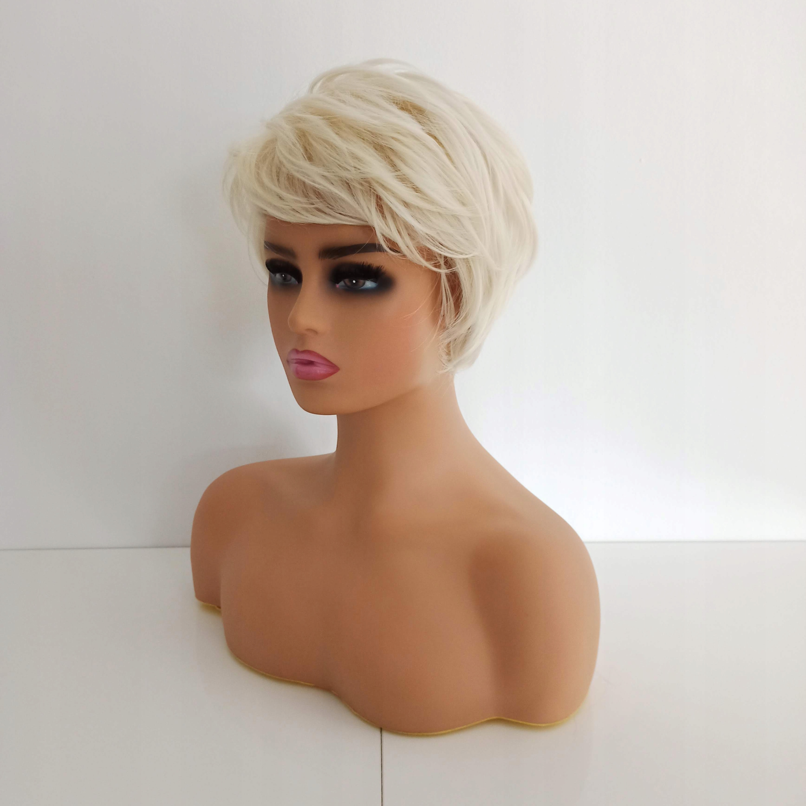 Платинова перука яскрава коротка коротка боб + шапка безкоштовно