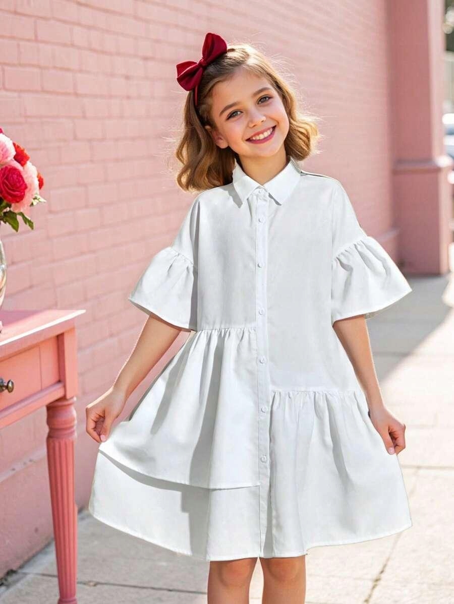Плаття з білою сорочкою з кнопками коміра з короткими рукавами Shein 140