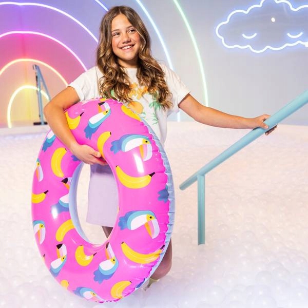 колесо з плавання Tucan Bananas від Swim Essentals. Колесо діаметром 90 см призначене для дітей віком від 6 років. Завдяки цьому ваша дитина може відчувати себе в безпеці, коли грає в басейні, озера чи моря. Ідеально підходить для плавання та відпочинку. Ідеальне колесо також для плавання для дорослого до максимальної ваги 80 кг.