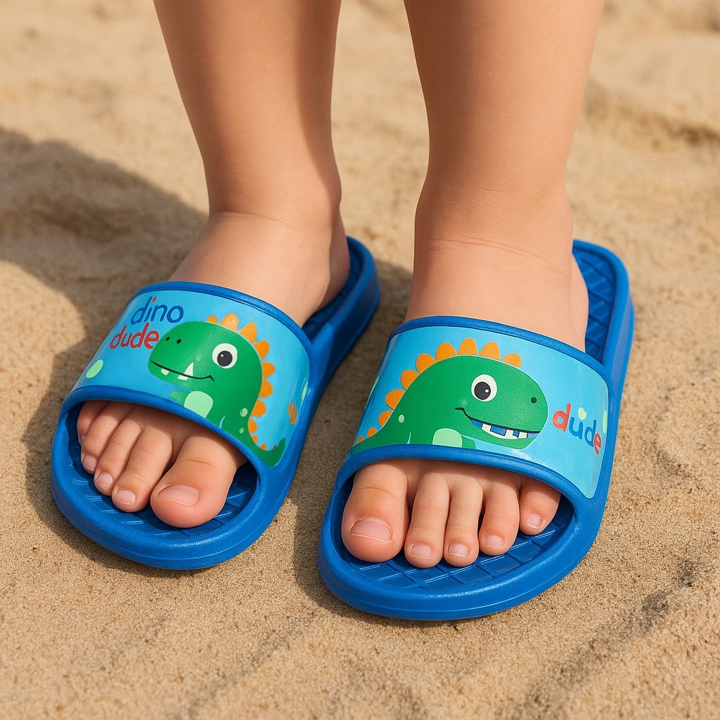 Тема Dino Dude, яка прикрашає ці шльопанці, привертає увагу і запалює уяву кожного малюка. Смішні динозаври, яскраві кольори та енергійний дизайн роблять ці шльопанці -не тільки практичне взуття, але й улюблене доповнення до літнього гардеробу кожної дитини. ⭐