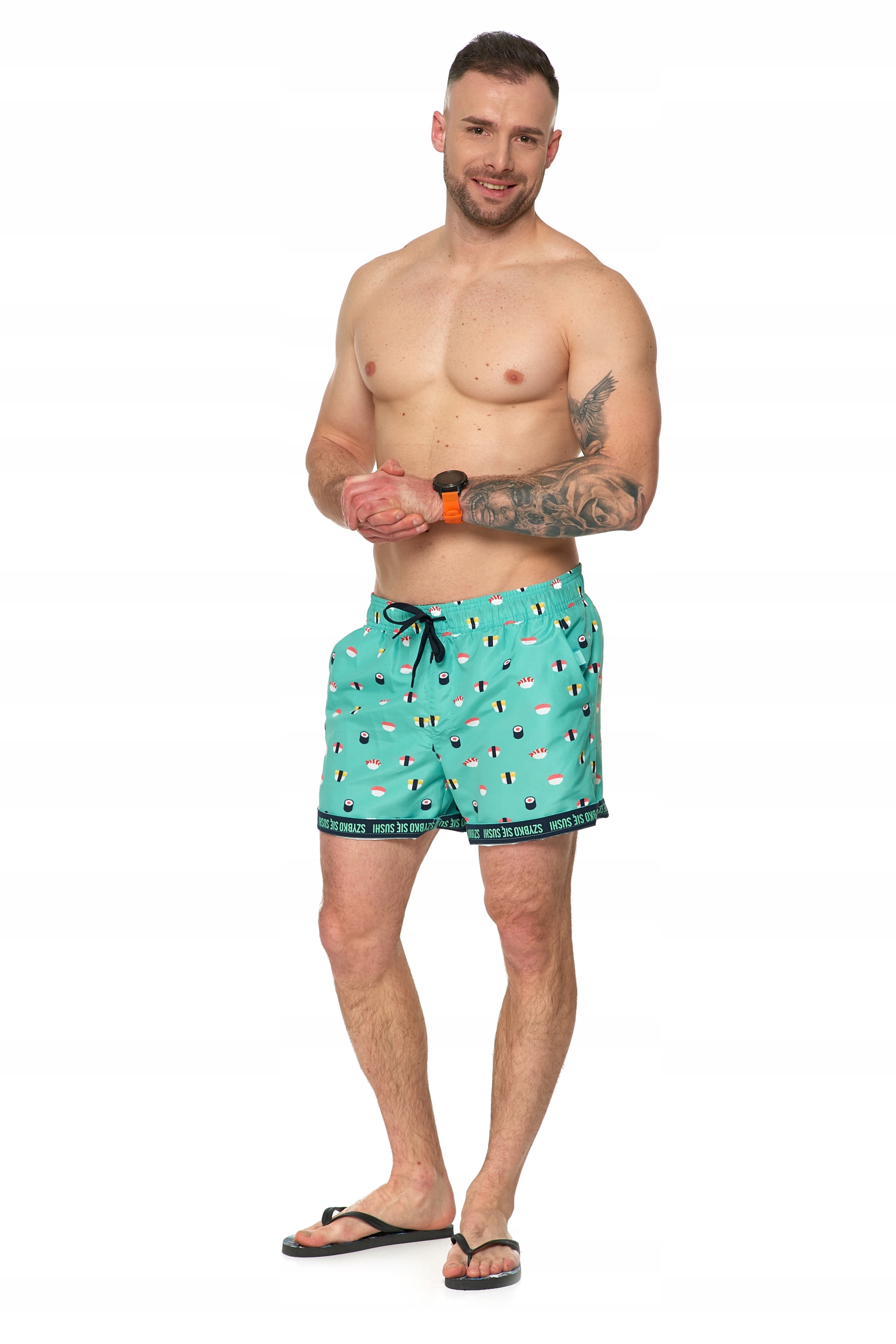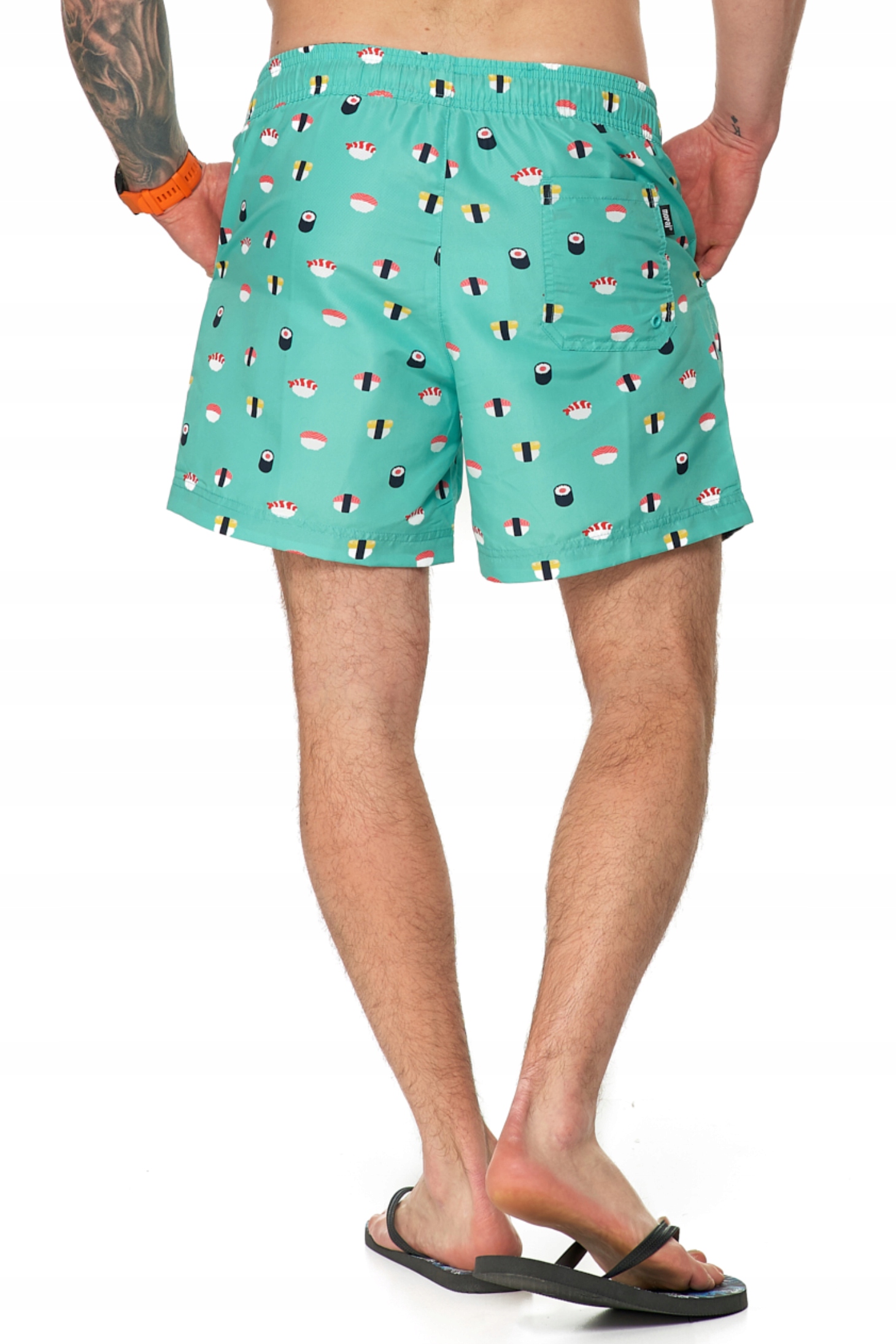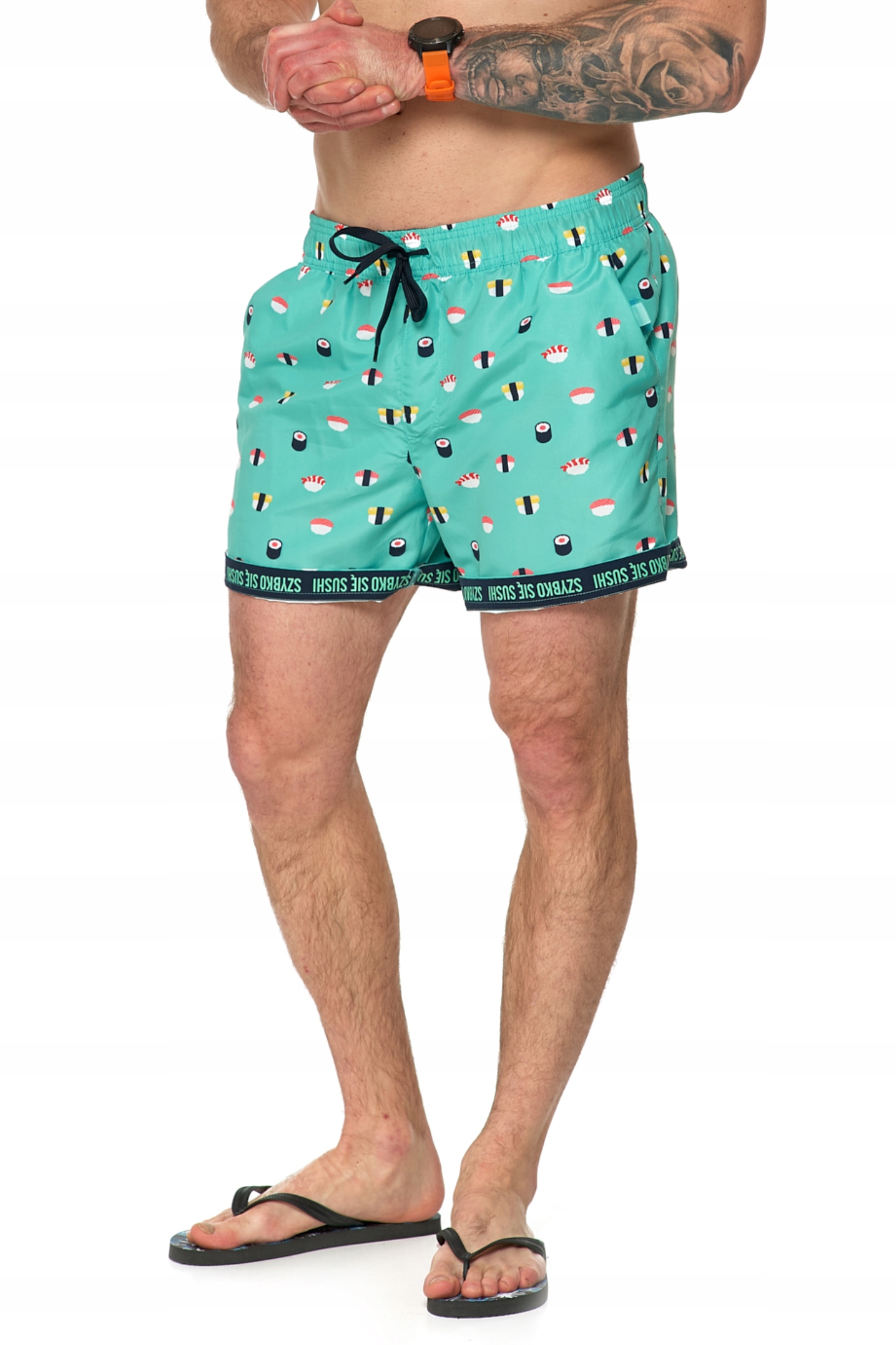 чоловічих шортів, виготовлених з гладкого, легкого матеріалу, ідеально підходять для весняних днів. Матеріал має швидкі властивості. Він підходить для створення випадкових стилізацій та просто до пляжу. Вони відрізняються багатьма привабливими прикрасами та оригінальним малюнком. На талії вони мають комфортну гнучку гуму. Крім того, у них є практичне прив’язування до рядків, завдяки якому ви ідеально порівнюєте їх зі своєю фігурою. Всередині, зсередини, шорти мають тонкі сітчасті вставки. Є неохайні глибокі кишені з обох боків. Залежно від уподобань ноги, ви можете охолонути чи ні.