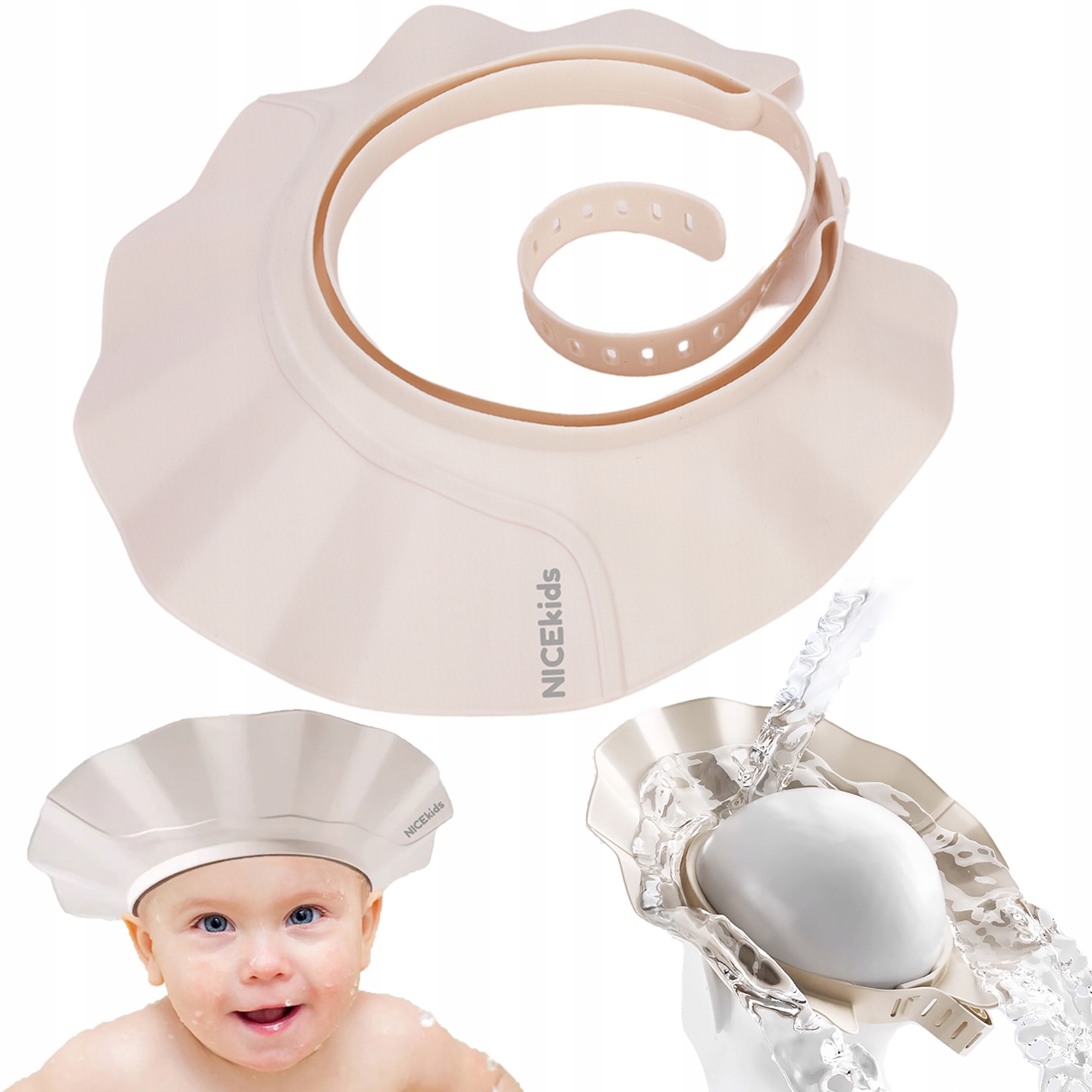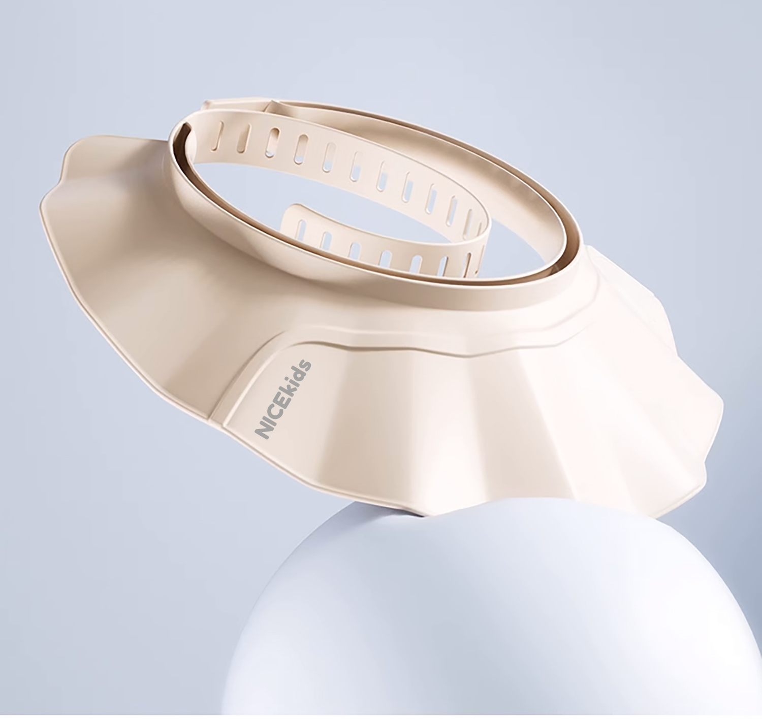 Завдяки спеціально розробленій запатентованій структурі та поєднанню двох матеріалів (твердого даху та м’якого силікону) крайка захистить очі, вуха та обличчя вашої дитини від води та шампуню. Ніжне бежеве покриття додає шарму та елегантності нашому продукту.