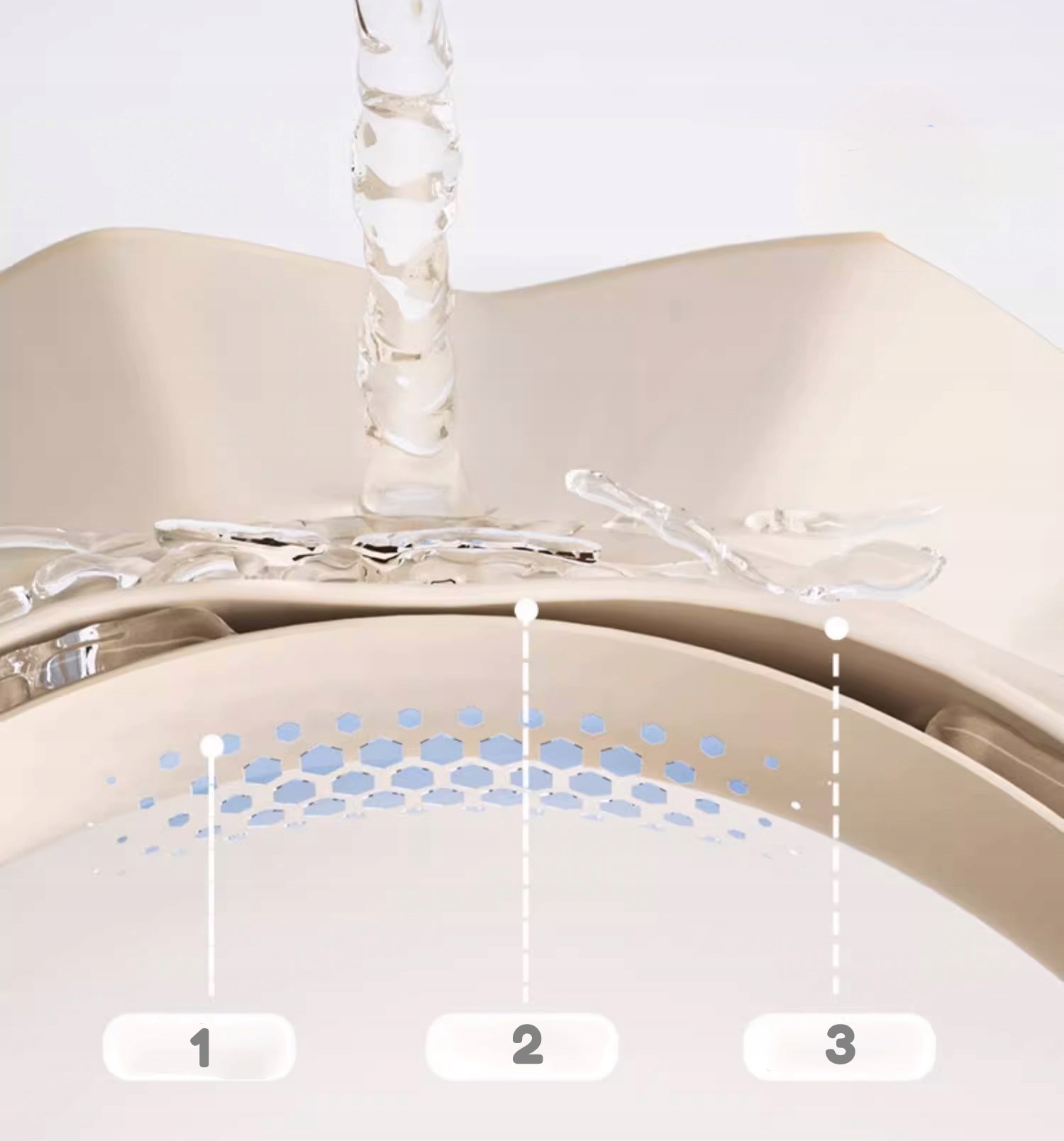 Використання запатентованої повітряної подушки зменшує тиск води під час ополіскування голови, завдяки чому край не ковзає і вся вода стікає назад.