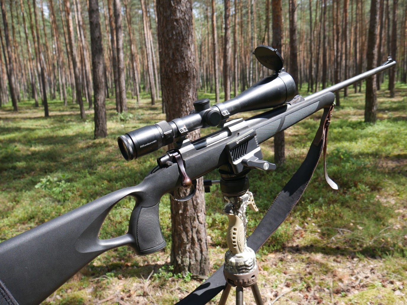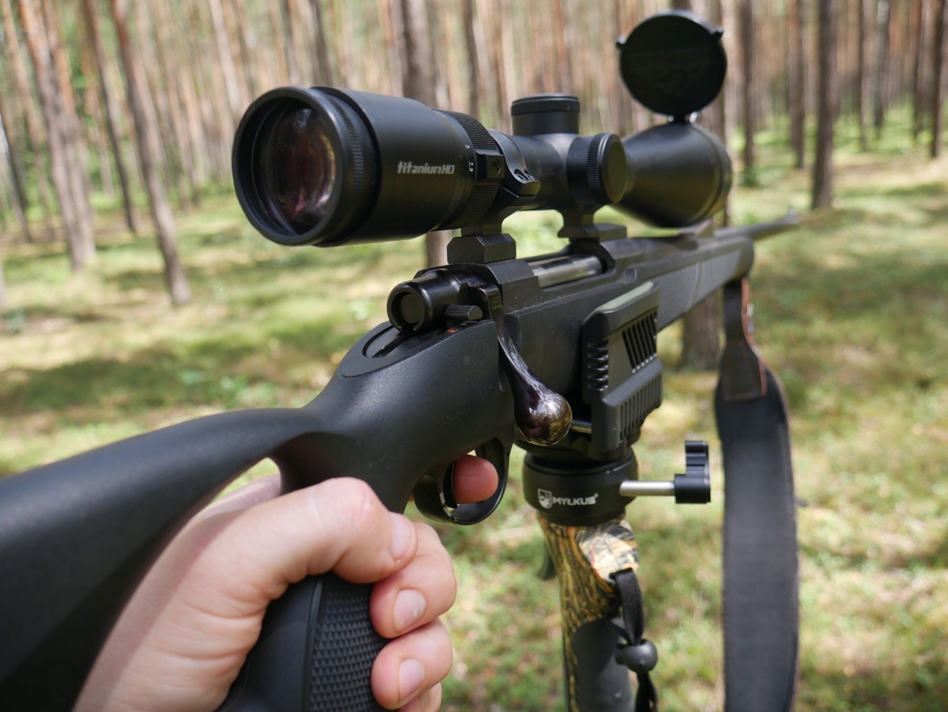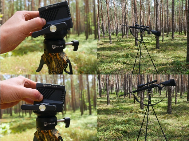 Найбільшою перевагою набору, доступного в цій пропозиції, є можливість дуже вільного та плавного регулювання кута зброї, і, таким чином, точна націлення в різних ситуаціях полювання/стрільби без необхідності регулювати висоту пасторальних ніг, переставляти її або обертатися. Однак повного м'яча головки достатньо, щоб покрити всю місцевість у горизонтальному та вертикальному напрямку. Зброя, що спирається на пастир, може бути іммобілізована в будь -який час, перетворивши спеціально витягнуту ручку, щоб полегшити операцію для стрільця. Голова обертається навколо її осі.