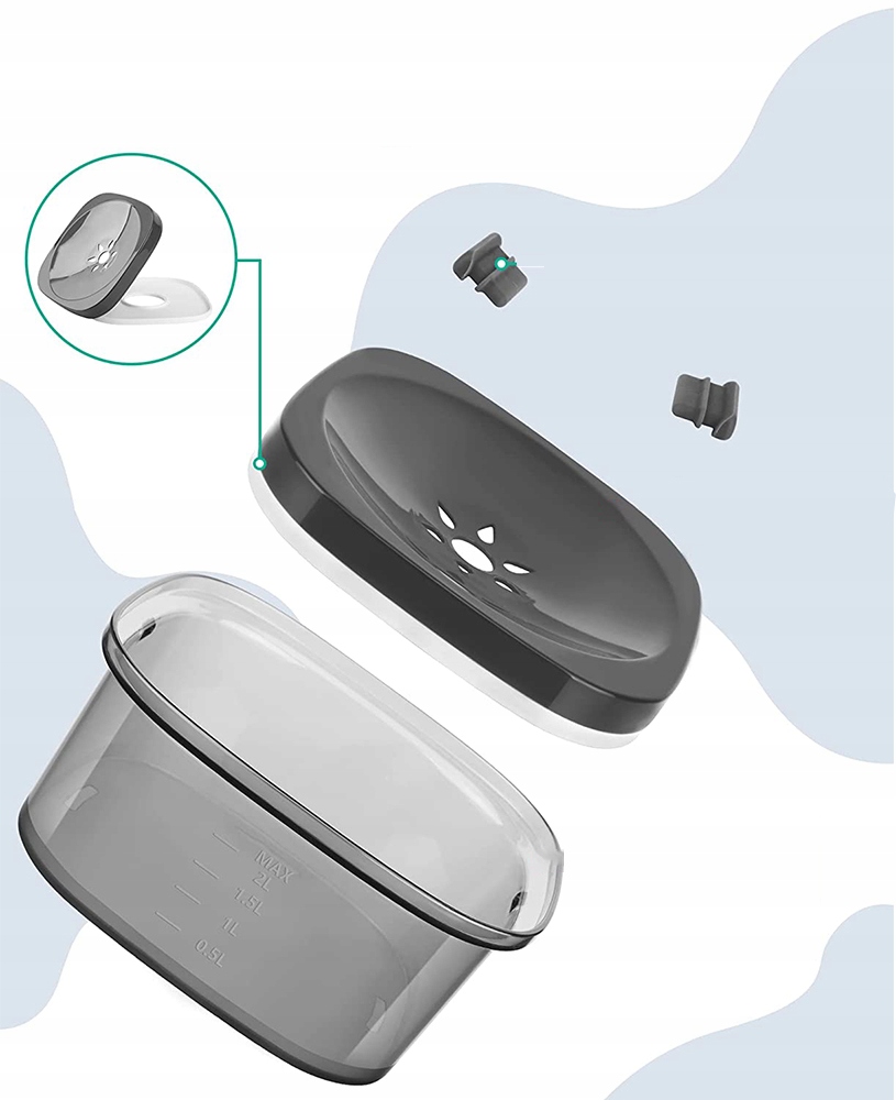 вода для тваринної води, не -слиз, відсторонена, чищення, ємність 2 л, уповільнює пиття