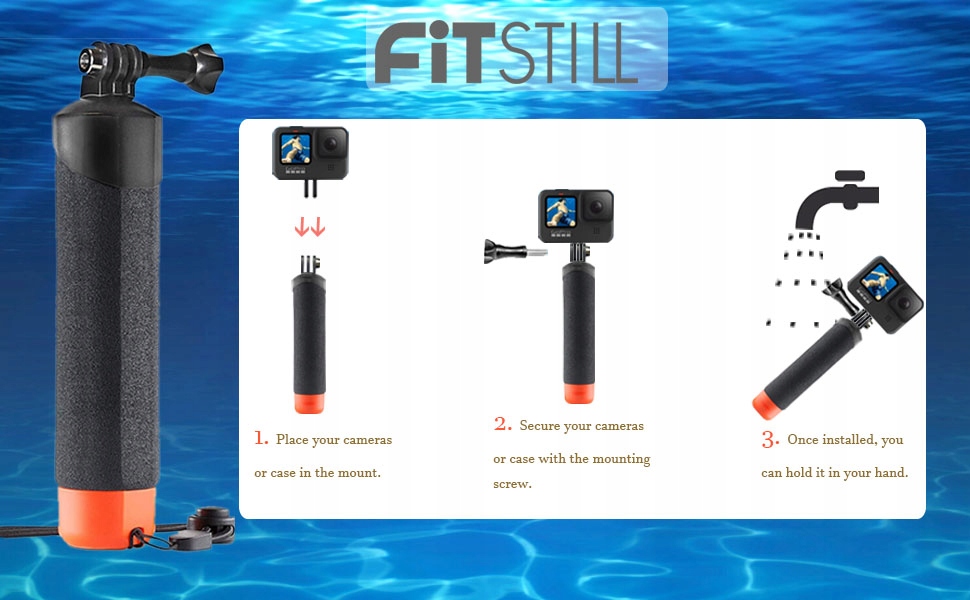 Водонепроникний монопод із плаваючою ручкою FitStill для Go Pro Hero 12/11/10/9/8/7/6/5/4/3 сеансів DJI Osmo та інші екшн-камери для підводного пірнання. і аксесуарів на поверхні води та запобігає потопленню.