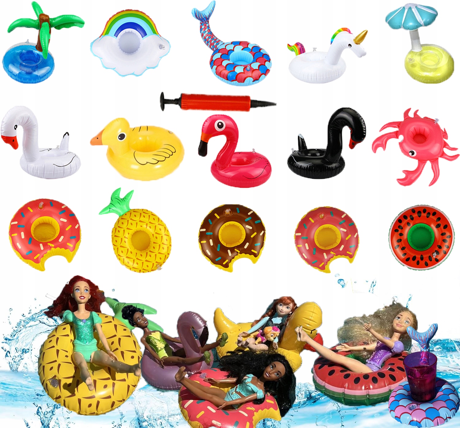 Додайте шарму будь-якій літній вечірці! Цей набір із 15 надувних підставок для напоїв ідеально підходить для басейну, пляжу, гідромасажної ванни чи навіть ванни! Набір містить різноманітні візерунки: фламінго, єдинороги, пончики, кавуни, ананаси, лебеді та інші різнокольорові фігури, які сподобаються як дітям, так і дорослим.