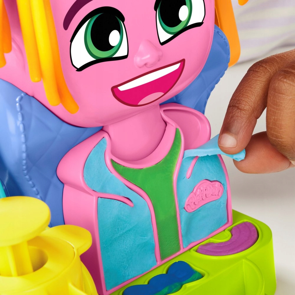 Перукарня — це набір, який дозволяє дітям створювати божевільні барвисті зачіски! Завантажте тісто для гри в отвір на голові, покрутіть рукоятку, і ви відростите дивовижні пасма. Підстрижте волосся ножицями або створіть кучері за допомогою щипців. Використовуйте формочки для булочок і ірокезів, щоб створювати круті аксесуари!