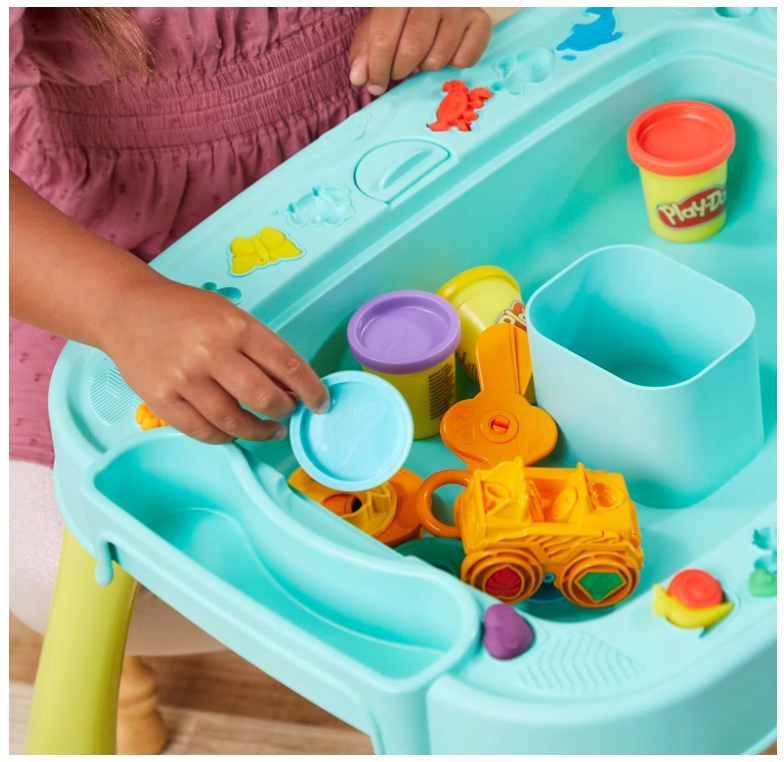 Подаруйте дітям власний ігровий простір, щоб розпалити їх уяву за допомогою багатофункціональної станції для творчості Play-Doh! Пластмасові іграшки для дітей стали ще креативнішими завдяки цьому столику для занять Play-Doh, що пропонує так багато способів гратися з 15 аксесуарами Play-Doh і 6 кольорами тіста для ігор.