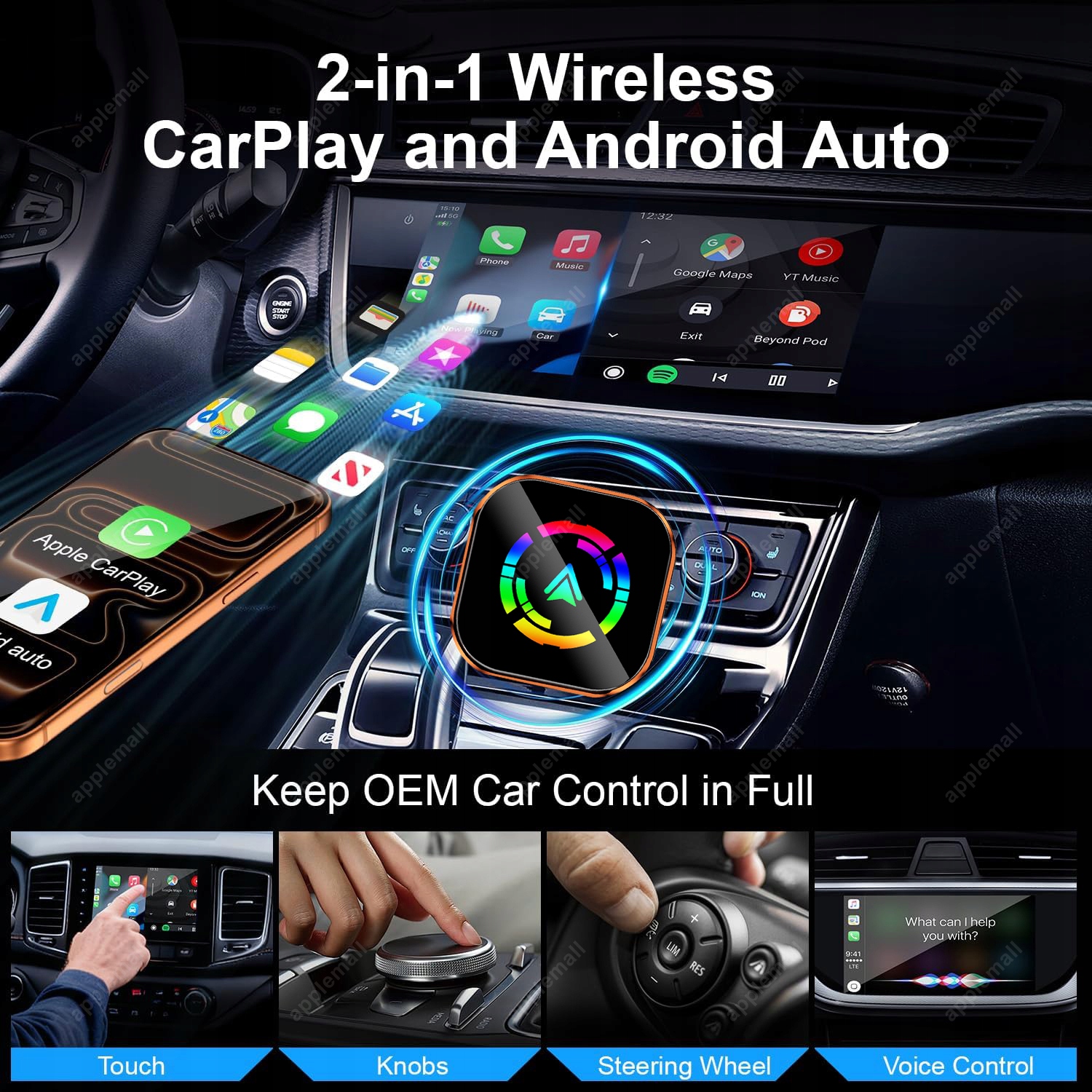 - [Універсальна сумісність] – сумісний із 98% заводських систем CarPlay, а для iPhone під керуванням iOS 10 або новішої версії наш адаптер постачається з опціями плагінів USB і USB-C для підходить практично до будь-якого транспортного засобу. 𝐀𝐑𝐌 𝐍𝐎𝐓𝐄: можна працювати лише на 𝐜𝐚𝐫𝐬 𝐰𝐢𝐭𝐡 𝐰𝐢𝐫𝐞𝐝 𝐜𝐚𝐫𝐩𝐥𝐚𝐲 𝐟𝐮𝐧𝐜𝐭𝐢𝐨𝐧𝐬 𝐚𝐟𝐭𝐞𝐫 𝟐𝟎𝟏𝟔. Крім того, бездротовий адаптер carplay 𝐝𝐨𝐞𝐬 𝐧𝐨𝐭 𝐬𝐮𝐩𝐩𝐨𝐫𝐭 𝐘𝐨𝐮𝐓𝐮𝐛𝐞 𝐚𝐧𝐝 𝐍𝐞𝐭𝐟𝐥𝐢𝐱 𝐯𝐢𝐝𝐞𝐨 відтворення, головним чином для безпеки водіння. (𝐍𝐨𝐭 𝐂𝐨𝐦𝐩𝐚𝐭𝐢𝐛𝐥𝐞 𝐰𝐢𝐭𝐡 𝐢𝐎𝐒 𝟏𝟖.𝟒.𝟎 𝐨𝐫 𝐢𝐎𝐒 𝟐𝟔, 𝐏𝐥𝐞𝐚𝐬𝐞 𝐔𝐩𝐝𝐚𝐭𝐞 𝐭𝐨 𝐢𝐎𝐒 𝟏𝟖.𝟒.𝟏 𝐨𝐫 𝐚𝐛𝐯𝐞! )