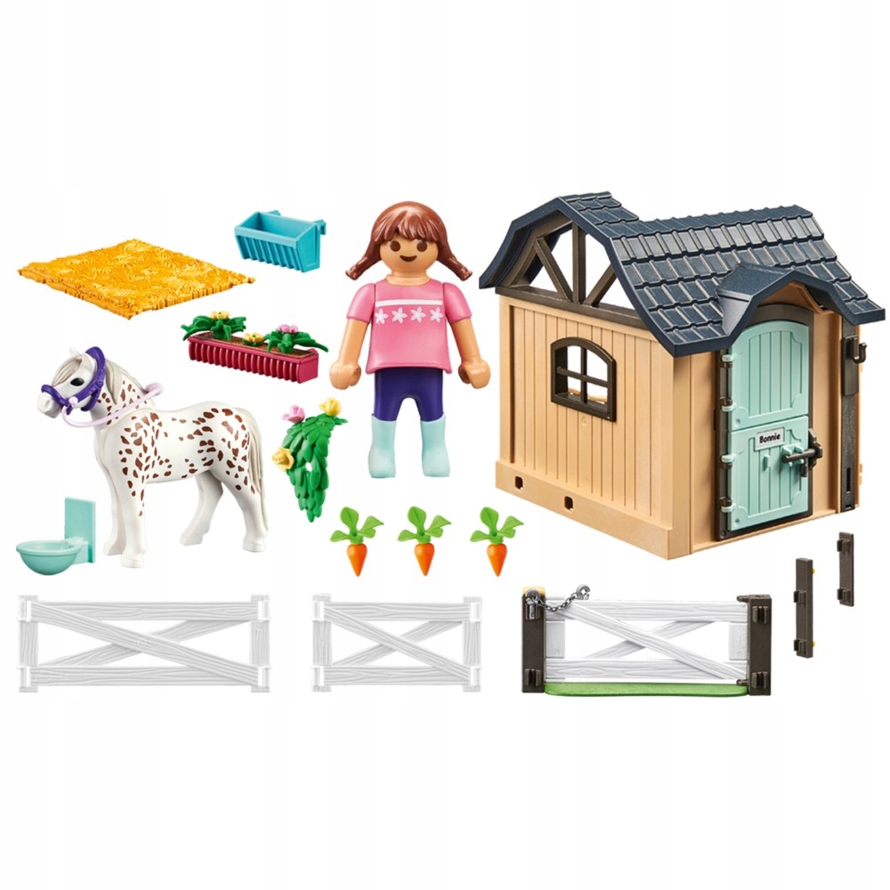 Рухова статуетка дівчинки Фігурка може вмістити деякі предмети Відкриті/ закриті двері боксу Включає наклейку для боксу, на якій ви можете написати назву коня Поширення до продукту PlayMobil, стабільного для коней 71238 Набір можна грати самостійно або поєднувати з іншими наборами країни PlayMobil