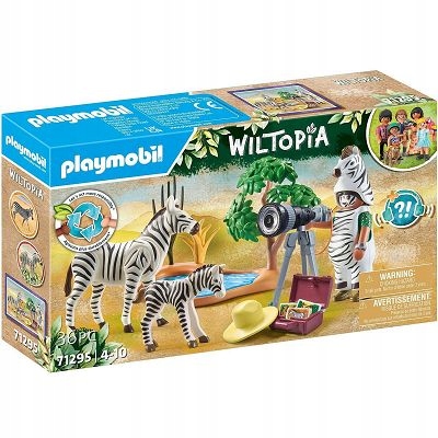 PlayMobil Wiltopia - поїздка з фотографом з тваринами. Набір із серії Wiltopia PlayMobil, що підтримує стійкий розвиток з Софією Палмером, Зебра, а також костюмом для маскування, камери та багатьох інших доповнень до гри на сафарі в дитячій кімнаті.
