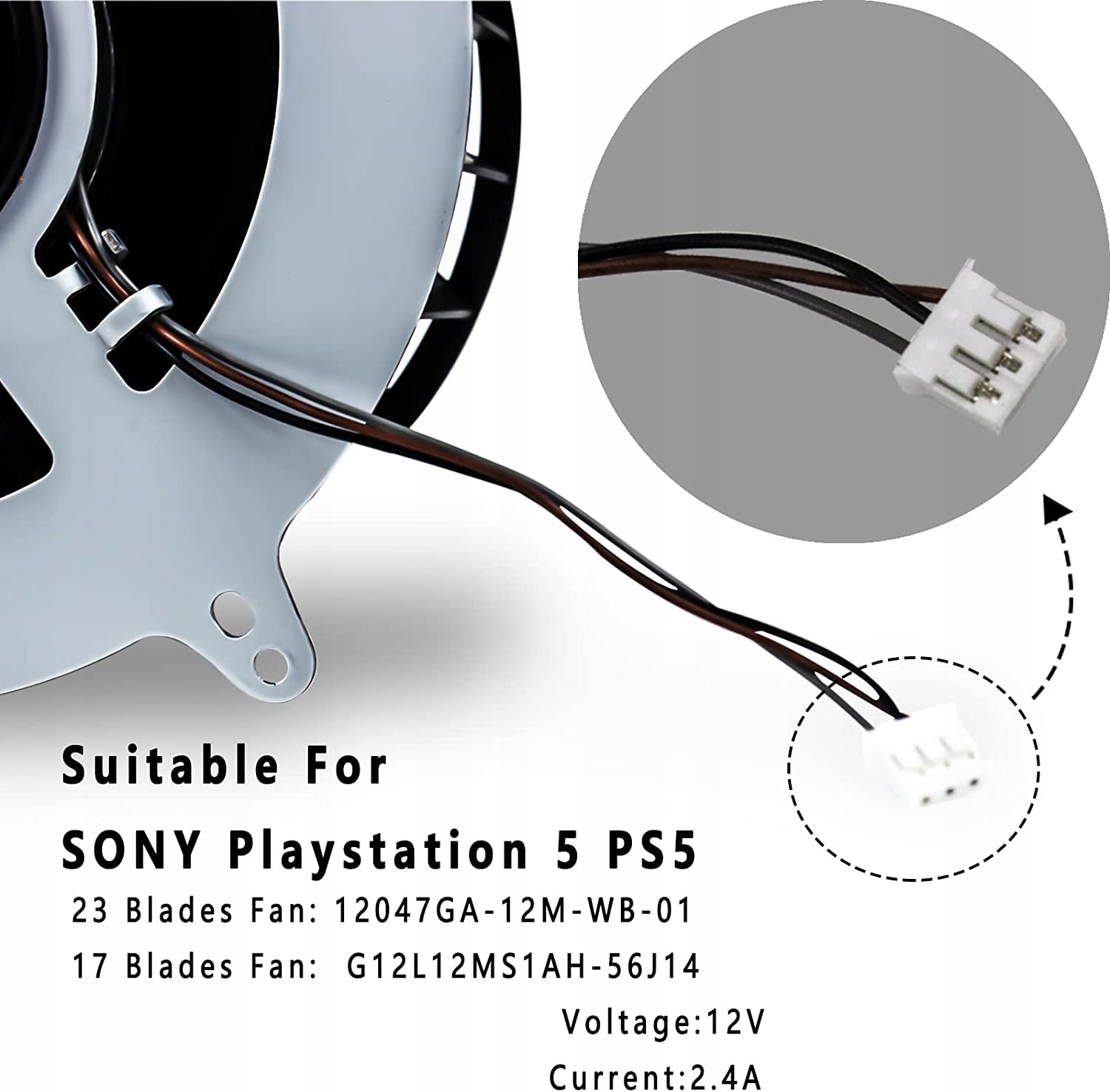 - ☀【 Сумісність】 Заміна вентилятора процесора сумісна з Sony PlayStation 5 PS5 12047GA-12M-WB-01 12 V 2.4 та 23 Blades General Blade 17 Blades G12L12MS1AH-56J14.