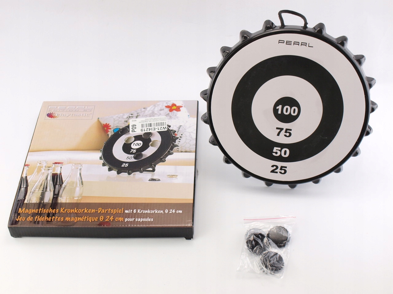 - Магнітний щит для дротиків Playtastic для гри з кришками від пляшок.