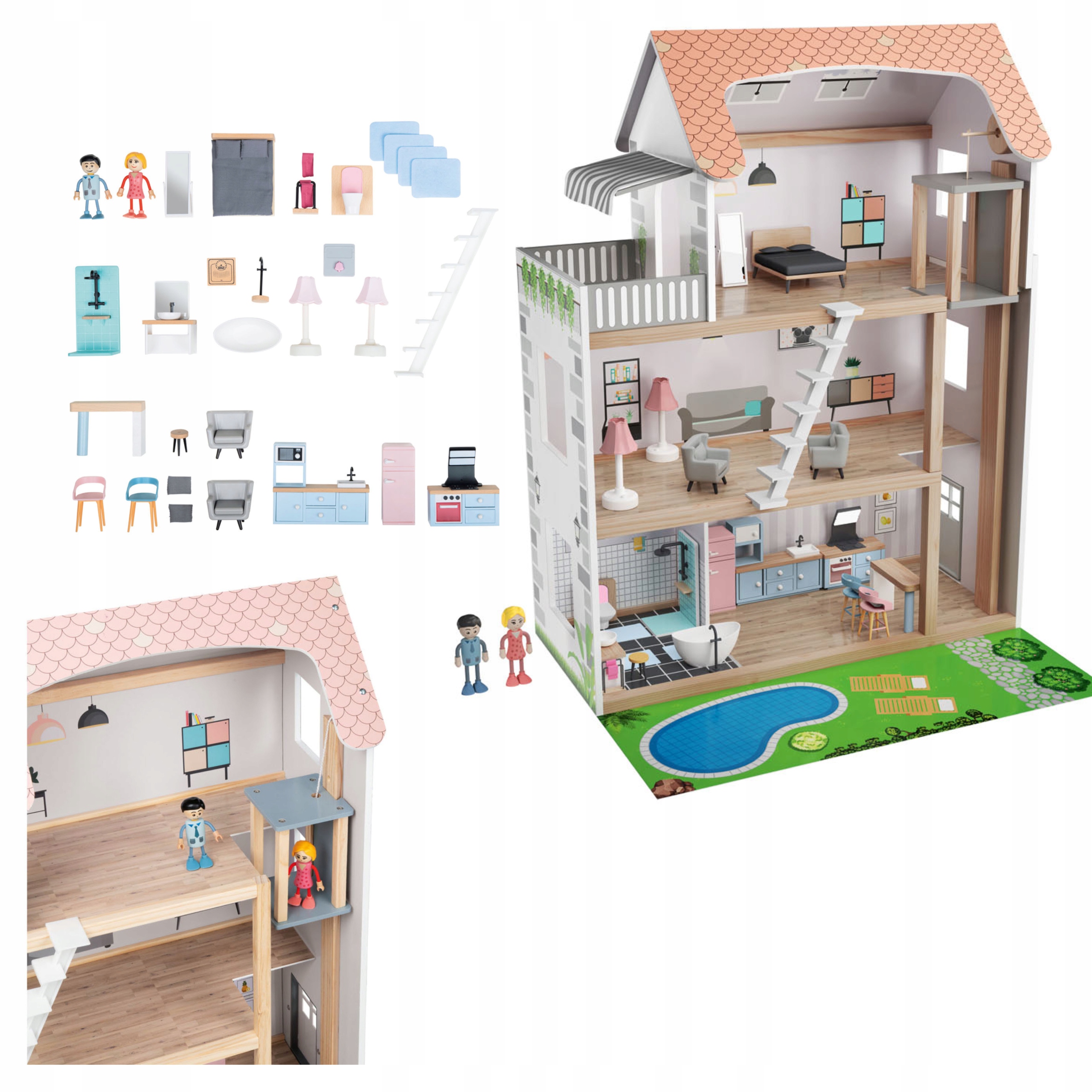 PLAYTIVE ДЕРЕВ'ЯНИЙ ЛЯЛЬКОВИЙ БУДИНОК З ОБЛАДНАННЯМ