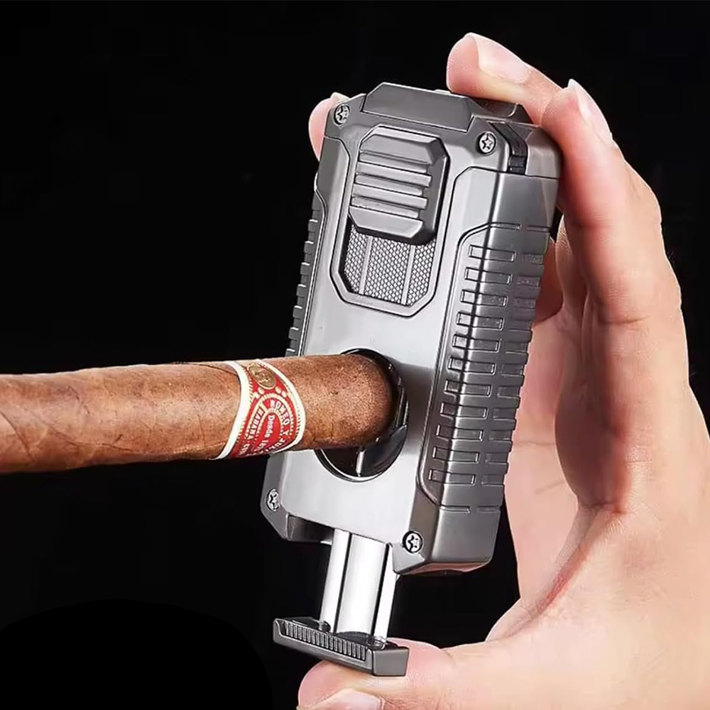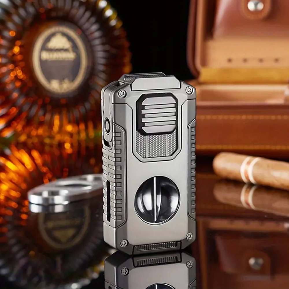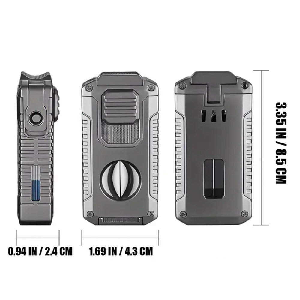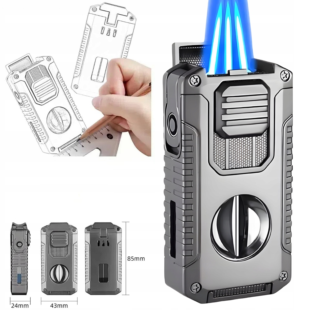 , оснащений трьома сильними пальниками, є більш стабільним і довговічним, ніж одноодинні запальнички. Регулятор полум'я внизу дозволяє гнучкому регулювати інтенсивність полум'я, а видимий отвір вентиляції збоку забезпечує візуальний індикатор решти палива, полегшуючи добавки під час мандрівки або кемпінгу, запобігаючи будь -яких витоках палива. Листи v і Punch: різниця V -укладання був точно розроблений для забезпечення оптимальної глибини різання; Пункт отвору міцний і легко розрізає отвори діаметром до 0,8 см (0,32 дюйма). Ці професійні аксесуари забезпечують ентузіастам ефективне та зручне використання, що робить роботу ще більш гладкою. (Примітка: легший не містить бутан).
