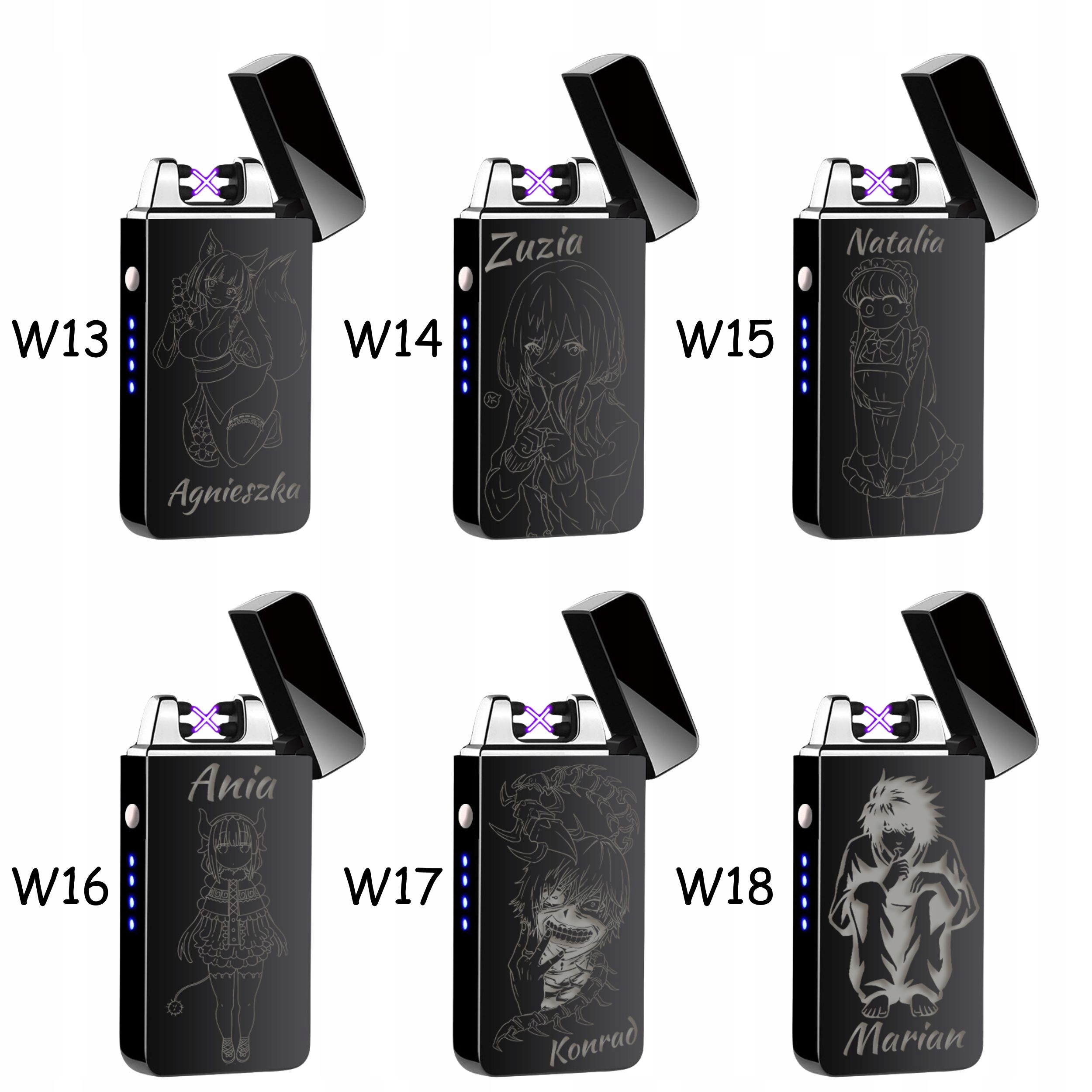 Поєднайте сучасну технологію з унікальним стилем - наша запальничка - це поєднання елегантної чорної обробки, світлодіодної підсвічування та постійної гравюри в аніме -кліматі.