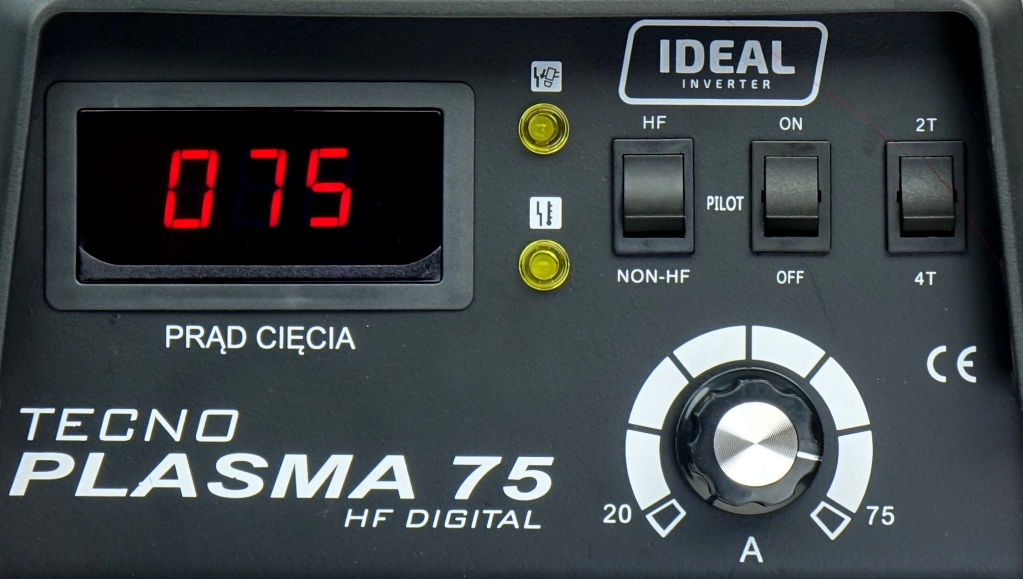 Різак IDEAL має просту у користуванні функціональну панель із ручкою, яка забезпечує плавне та точне струм різання регулювання в діапазоні 20 - 75 A. Передня панель різака оснащена:
