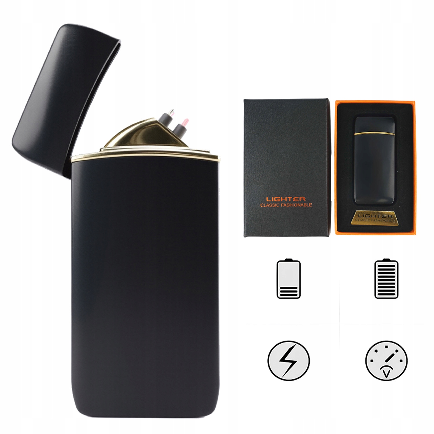 ПЛАЗМОВА ЗАПАЛИЧКА 2200MAH, ВІТРОЗАХИСТКА, ЧОРНА - ПОДАРУНКОВИЙ НАБІР