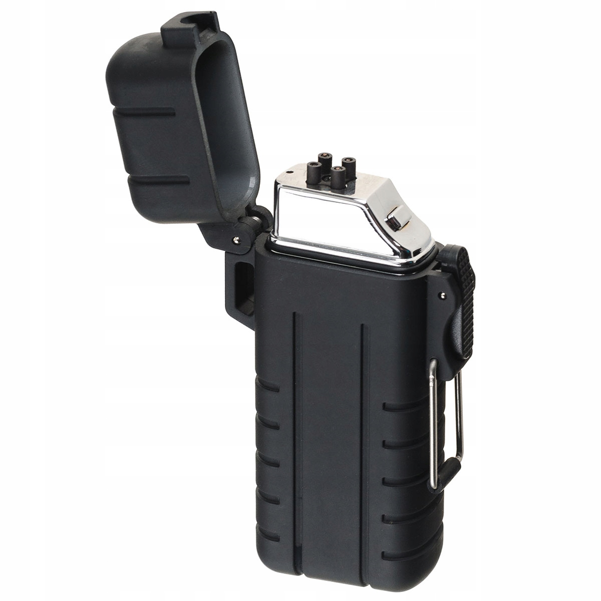 Міцна водонепроникна конструкція з міцного полімеру та металу. Ергономічна форма гарантує, що запальничка ідеально поміститься в руці. Антиковзаюча текстура полегшує використання запальнички в рукавичках або мокрими та холодними руками. Надійна подвійна система блокування захищає від випадкового відкривання запальнички. Зручна основна кнопка з нековзкою текстурою і пружинним механізмом. Додатковий замок з гумовим роликом. Кришка відкривається автоматично після відпускання кнопки і оснащена пружиною. Гумові D-кільця захищають від проникнення води. Вушко для повідця або петлі на зап'ясті. У комплект входить довгий знімний шнурок і кабель для зарядки. Запальничка упакована в естетичну коробку.