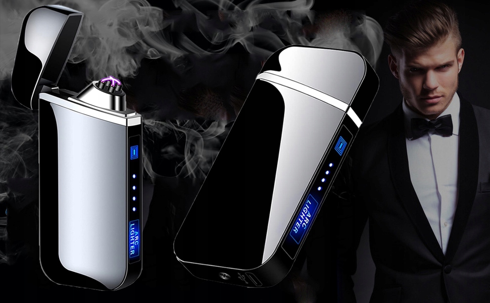⚡【Високоефективна та якісна електрична запальничка】Подвійна дугова запальничка, швидкість запалювання в 3-5 разів швидша, ніж одна електронна запальничка, ви можете легко запалити сигарети, свічки, папір тощо; Використовуйте високоякісний сплав цинку та стійку до високих температур керамічну пластину, безпечну та довговічну. Оновлені 4 світлодіодні індикатори для відображення різних рівнів заряду батареї, можуть нагадувати вам про зарядку перед тим; Цикл високоякісної батареї вистачає на 300–500 заряджень.