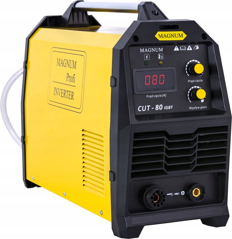 Пристрій MAGNUM CUT-80 IGBT створено на основі новітньої технології з використанням транзисторів IGBT, що забезпечує зниження електромагнітних перешкод, низькі втрати потужності, підвищену ефективність і надійність джерел живлення та зменшення споживання енергії. Фреза оснащена захистом від теплового перевантаження. Його перевагою є мала вага та плавне регулювання струму різання, що забезпечує високу якість різання матеріалу.