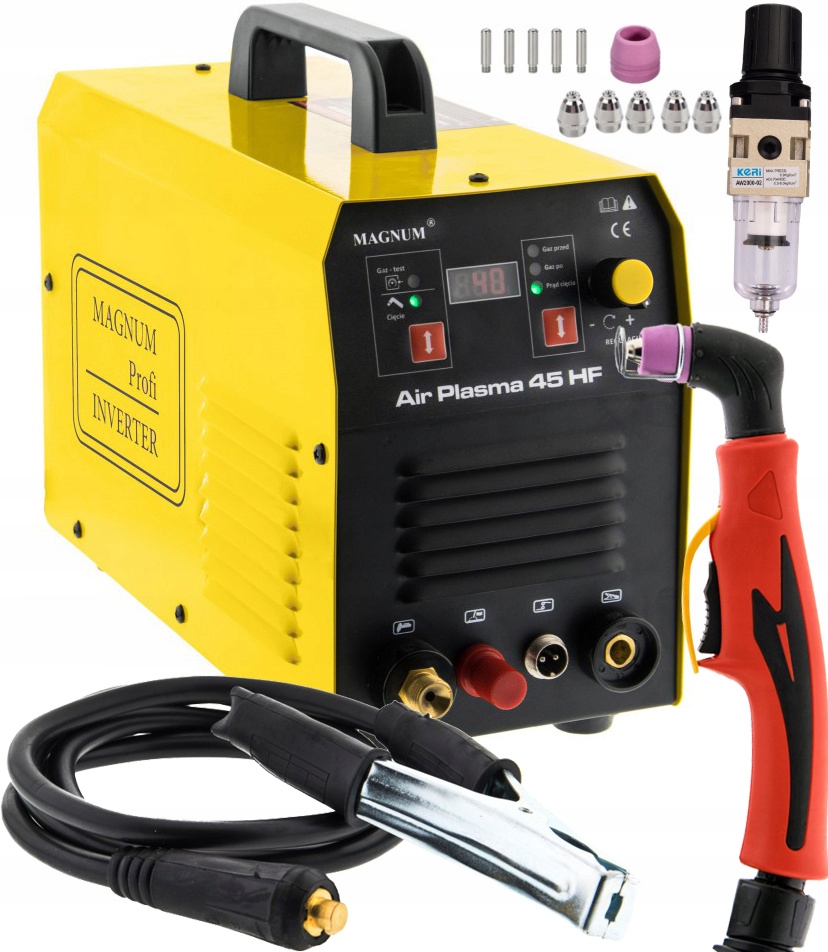 Пристрій MAGNUM AIR PLASMA 45 HF створено на основі новітньої технології з використанням транзисторів IGBT, що забезпечує зниження електромагнітних перешкод, низькі втрати потужності, підвищення ефективності та надійності джерела живлення та зменшення споживання енергії. Фреза оснащена захистом від теплового перевантаження. Його перевагою є мала вага та плавне регулювання струму різання, що забезпечує високу якість різання матеріалу.